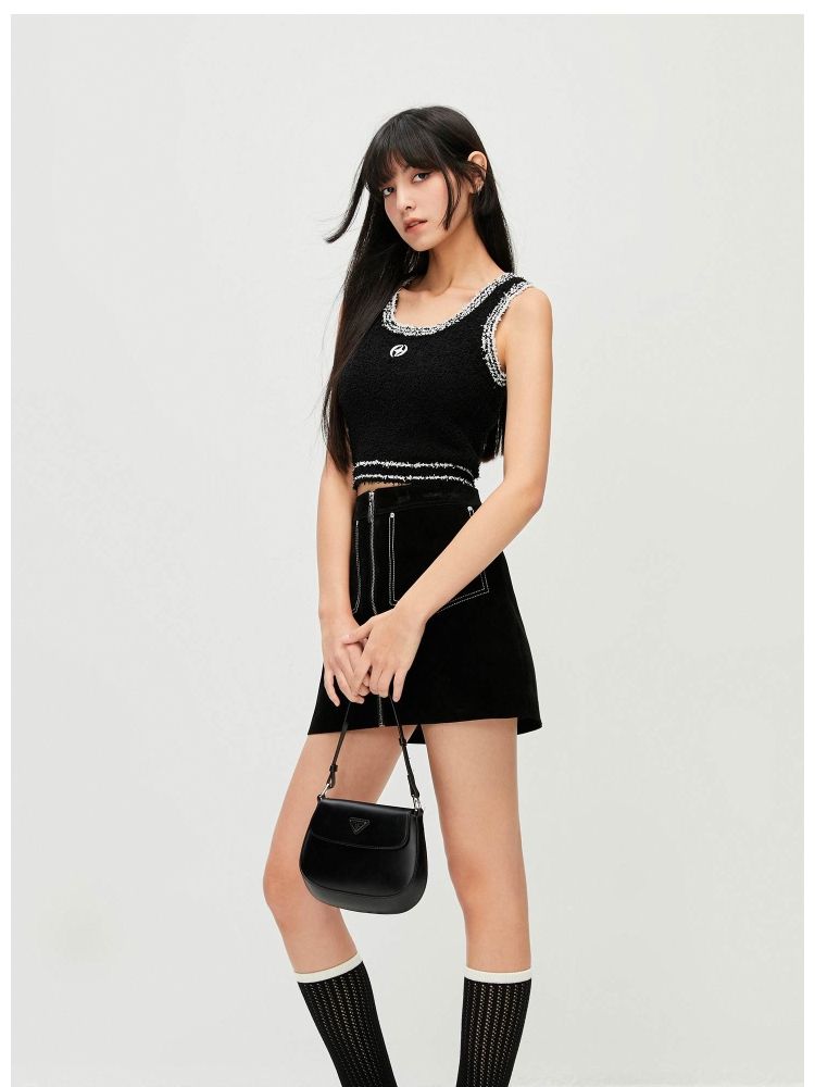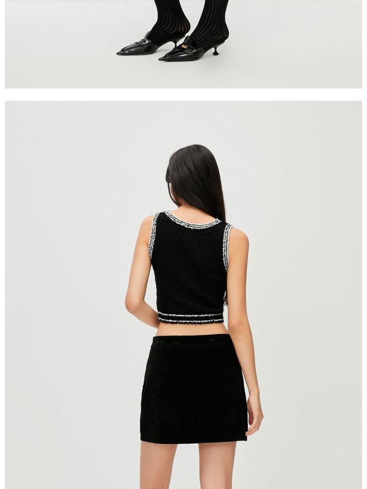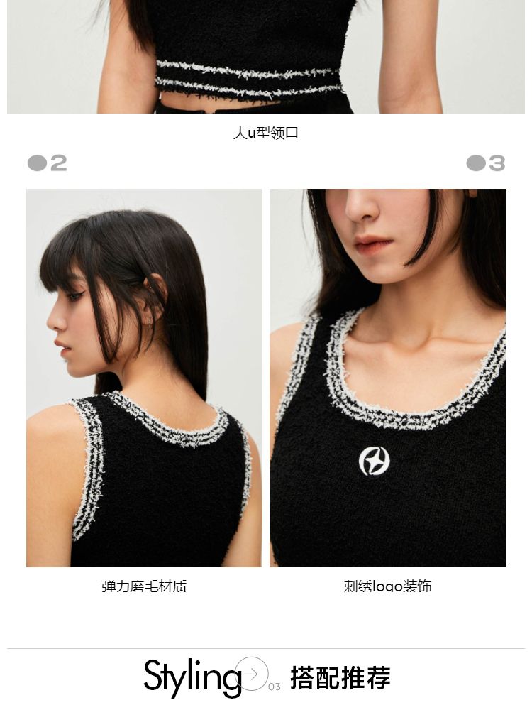 商品名称:【短款吊带】春季气质百搭修身刺绣短款吊带针织衫女 303322