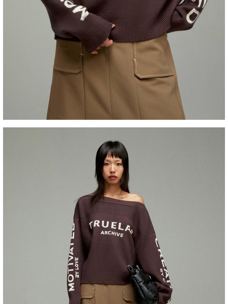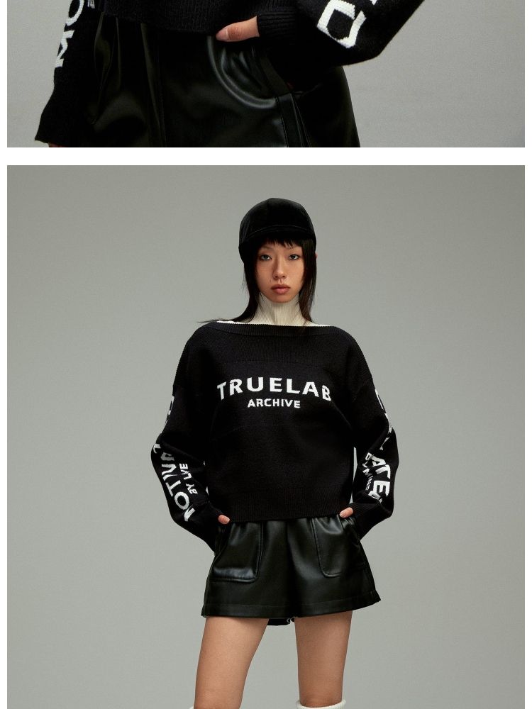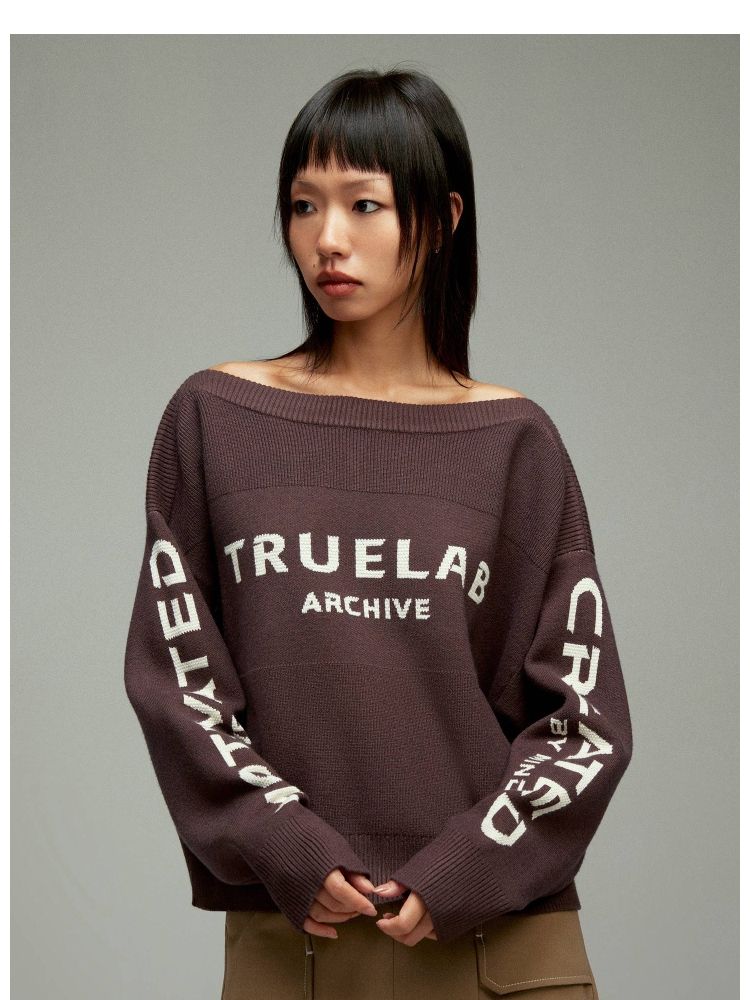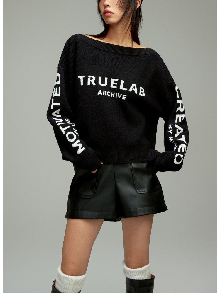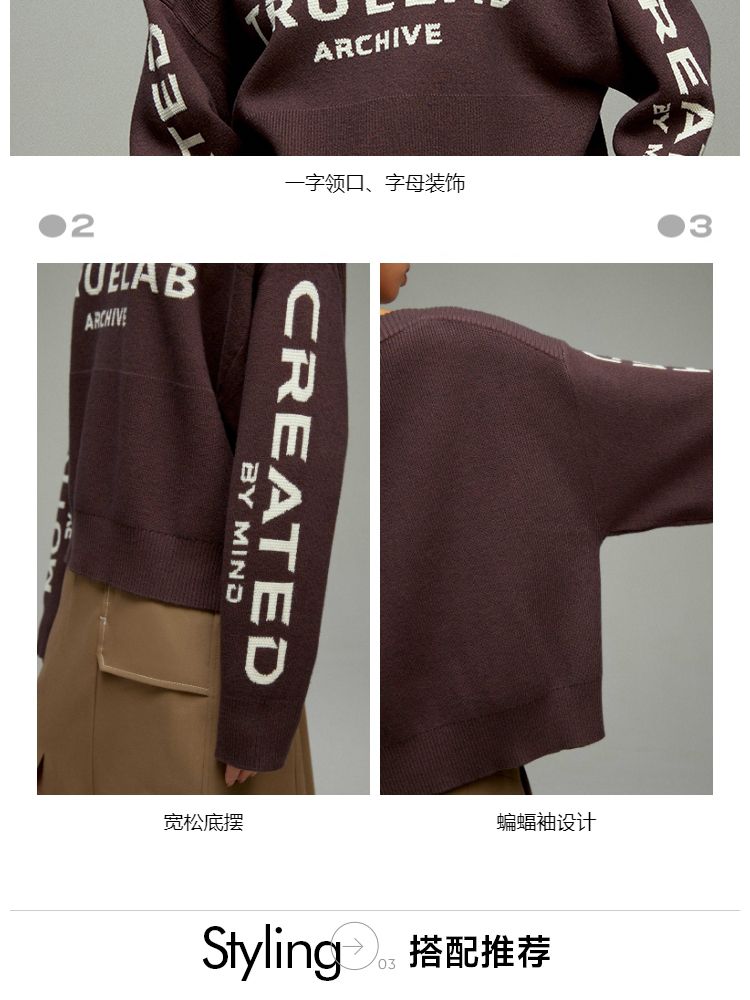 商品名称:【一字领设计】春季宽松一字领蝙蝠袖针织衫女 060762