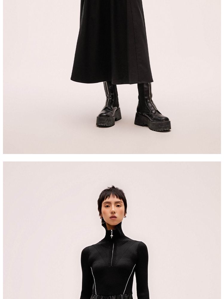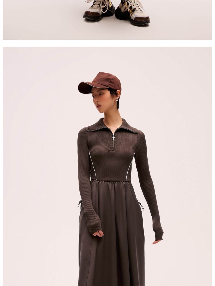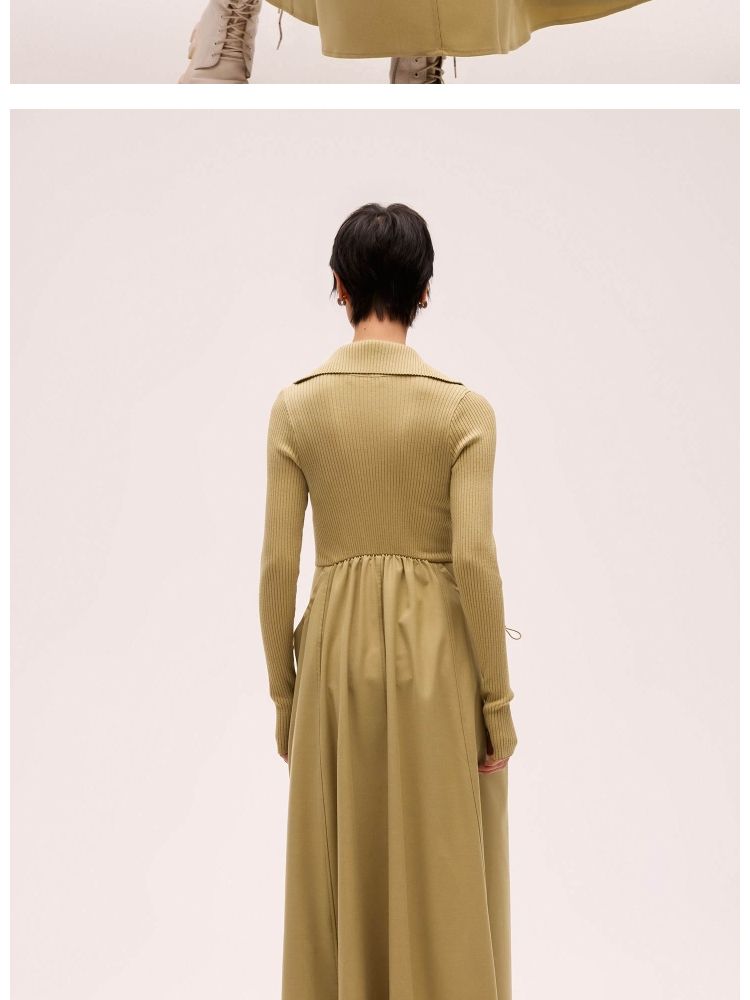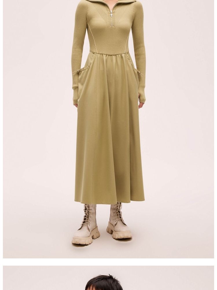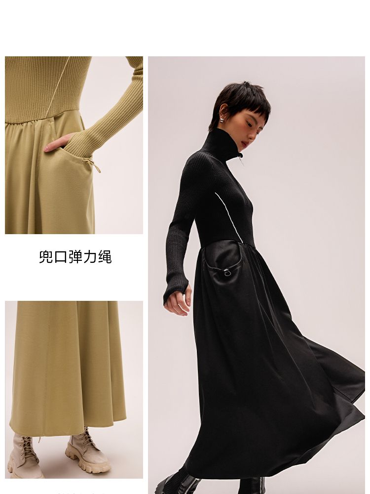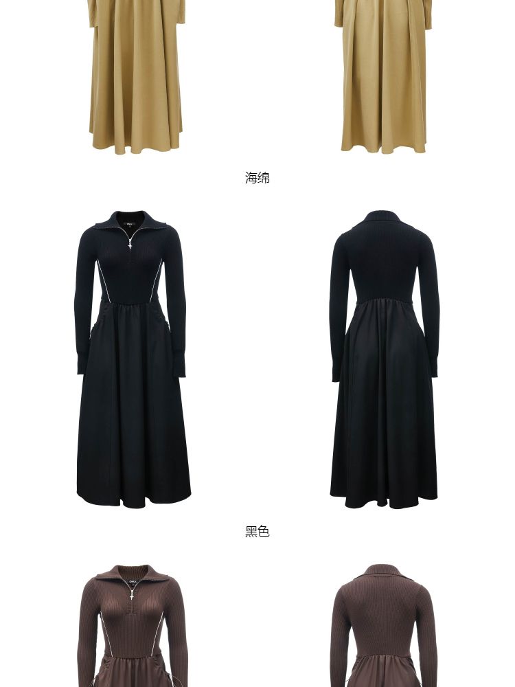 商品名称:【针梭拼接大摆伞裙】夏季秋拉链翻领长款抽绳大口袋连衣裙女 194330