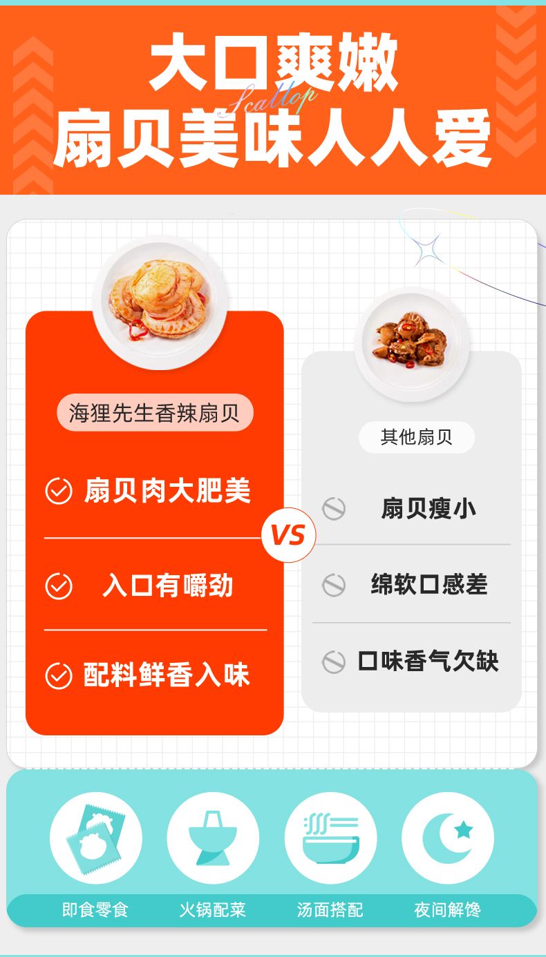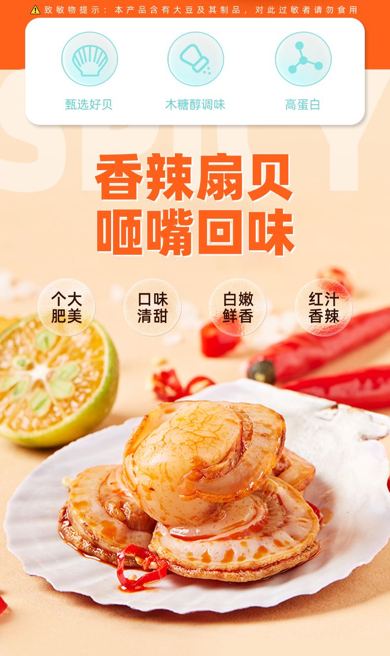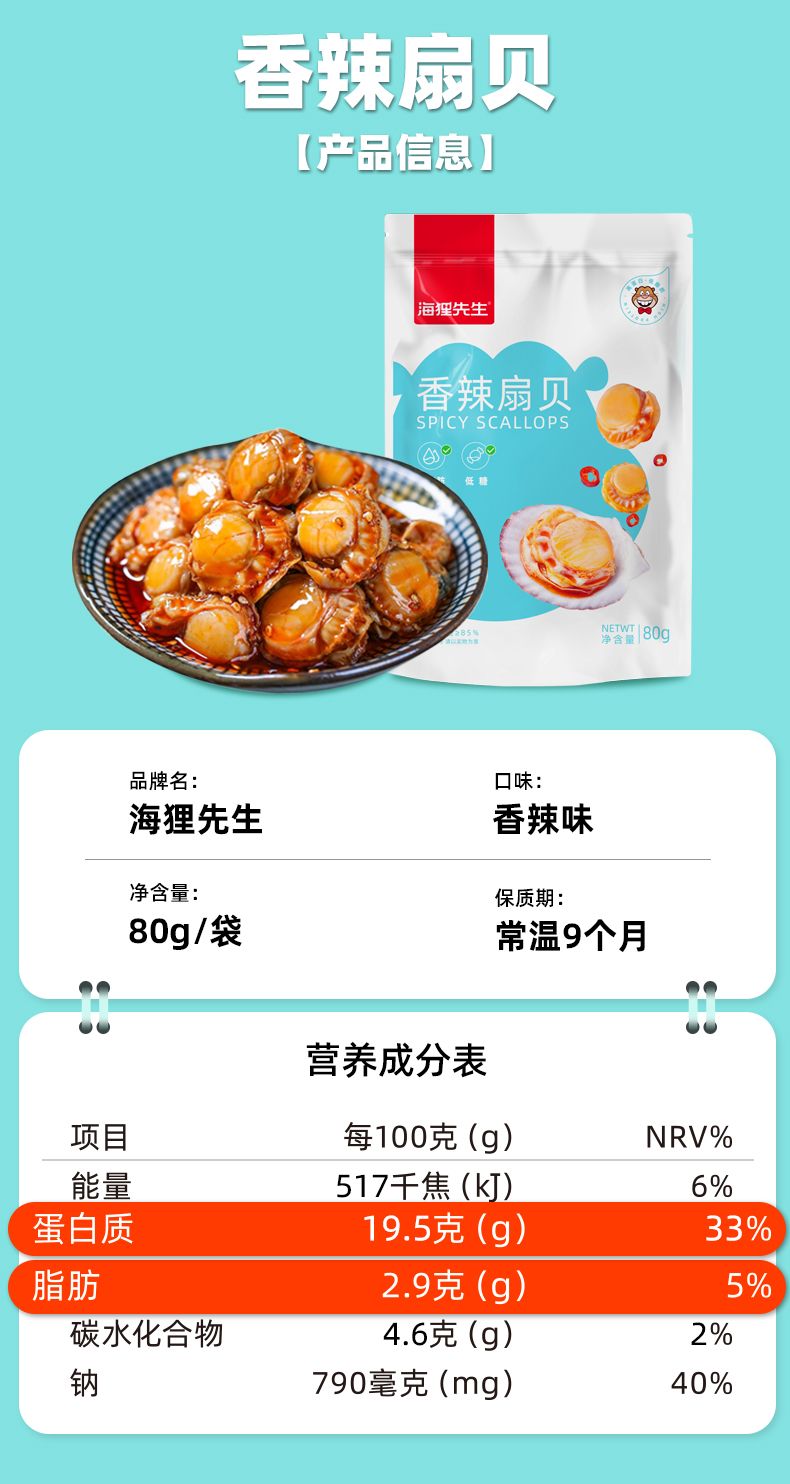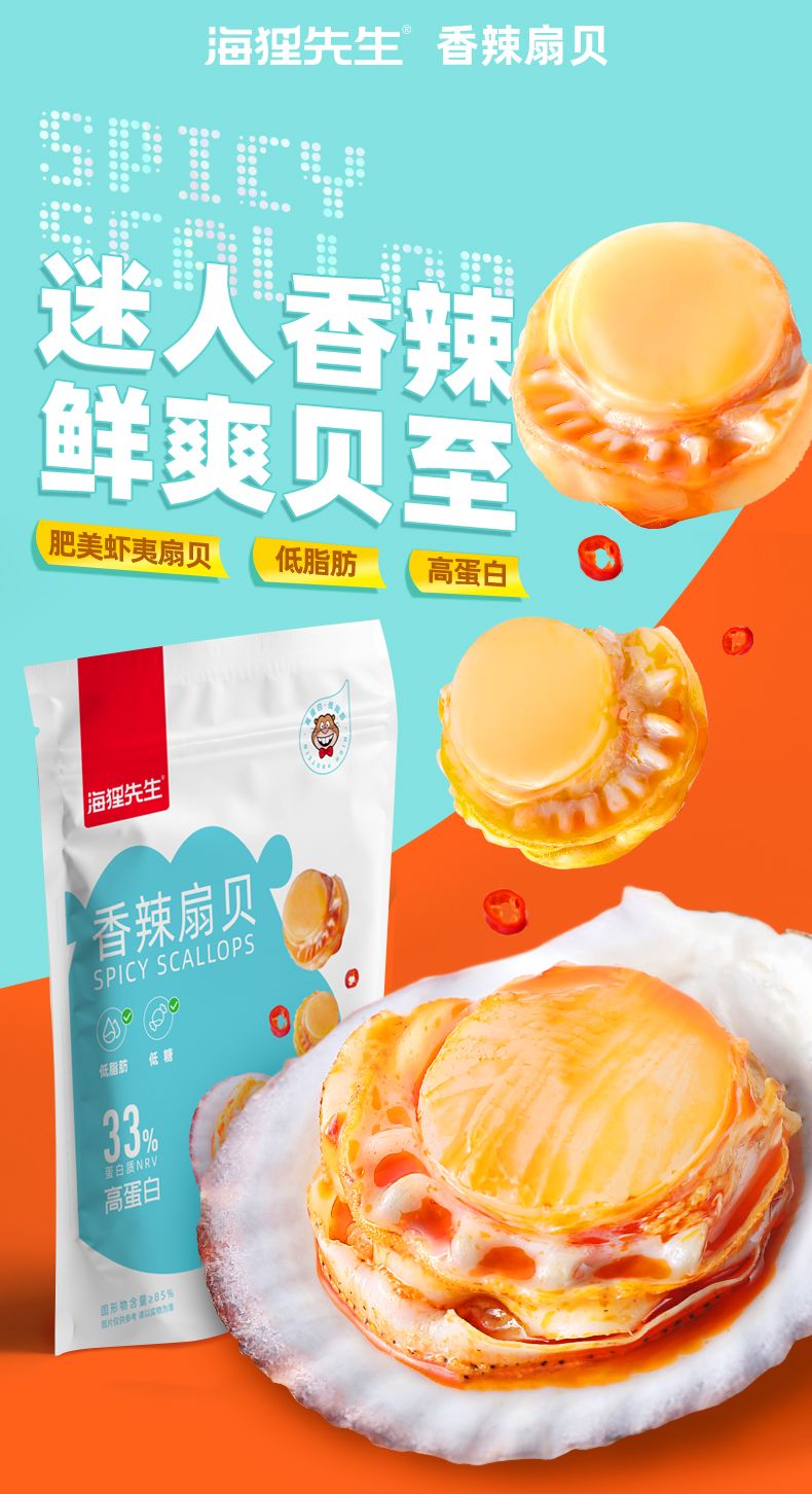 商品名称:海狸先生低糖香辣味扇贝80g*3袋