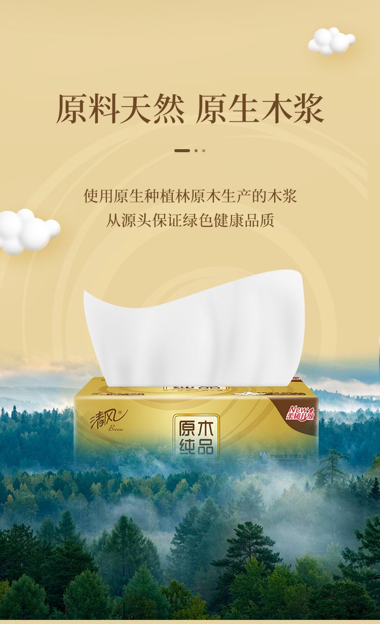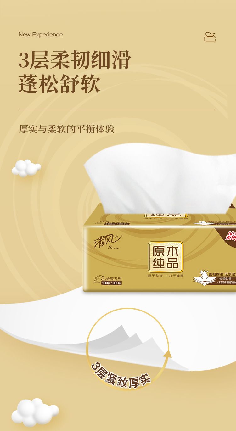 清风 原木金装3层抽取式面巾纸(130抽/包*24包/箱)