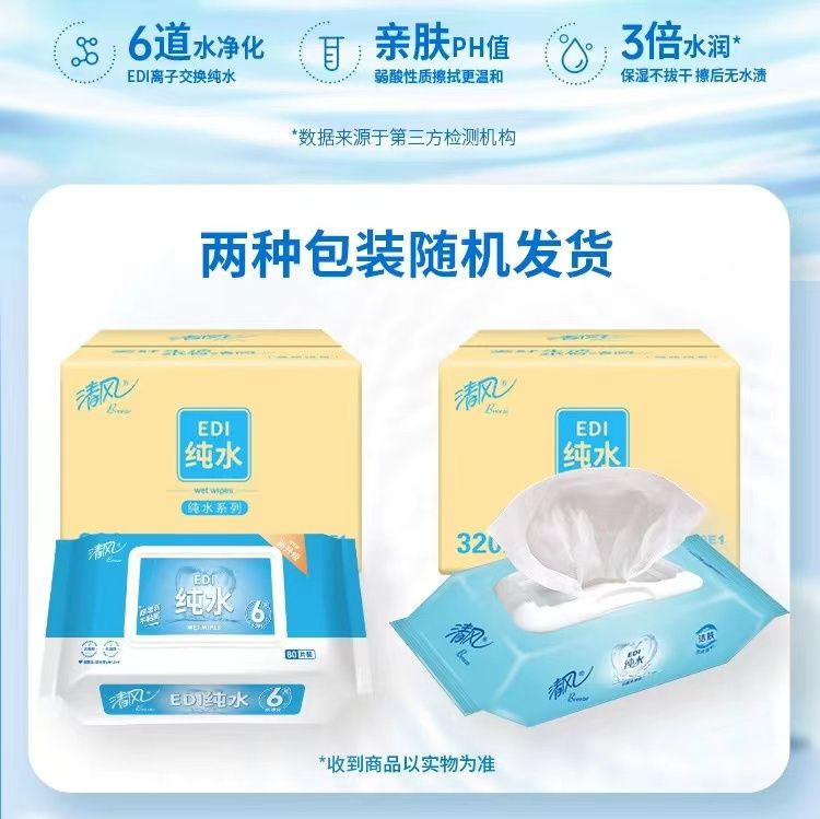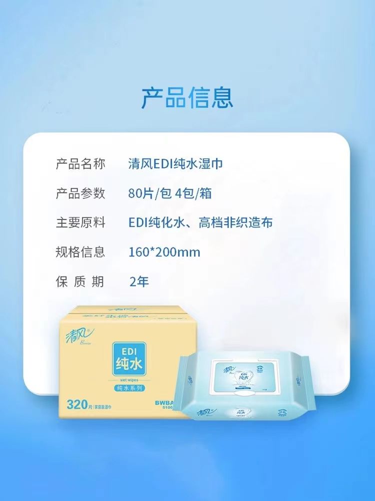 商品名称:清风 EDI纯水湿巾(80片/包*2包)