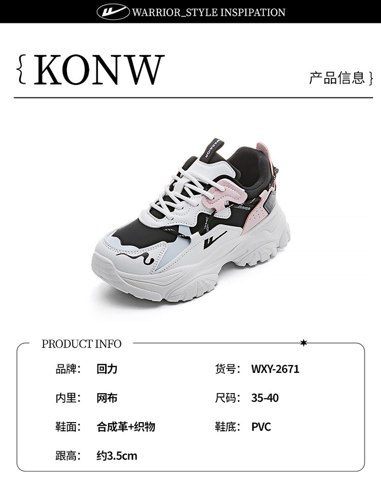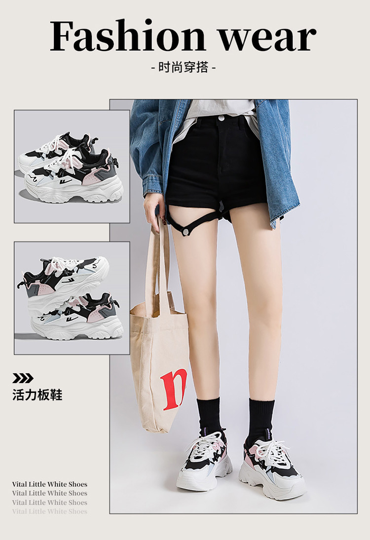 商品名称:厚底增高老爹鞋女25春季款女鞋平底运动休闲鞋女拼色小白鞋女 820692