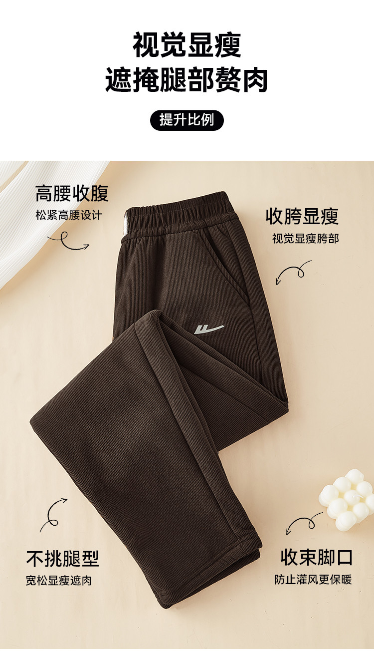 【加绒加厚】冬季女士运动裤高腰松紧裤保暖直筒裤大码休闲裤长裤 168339