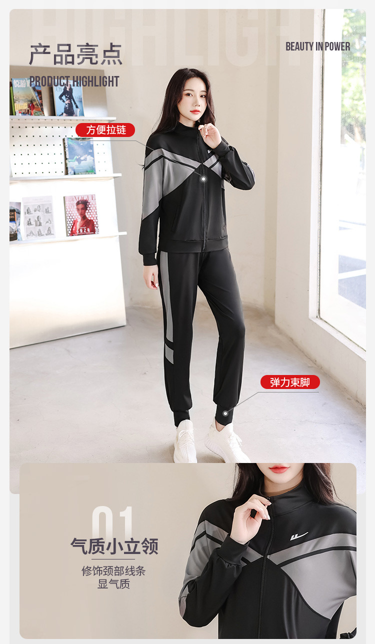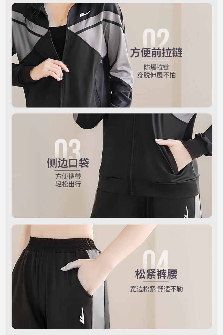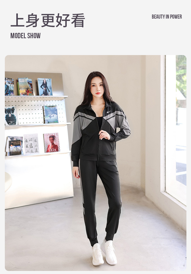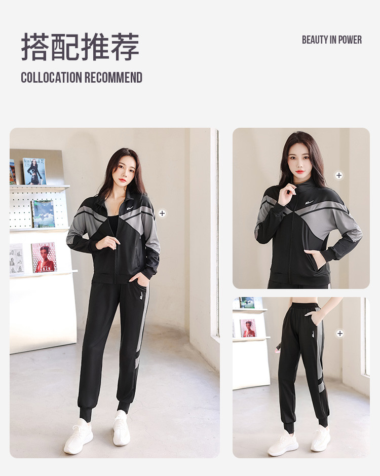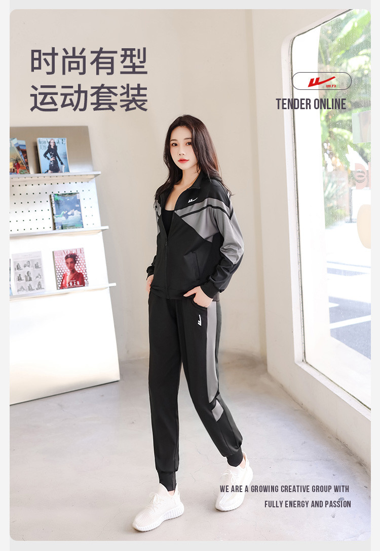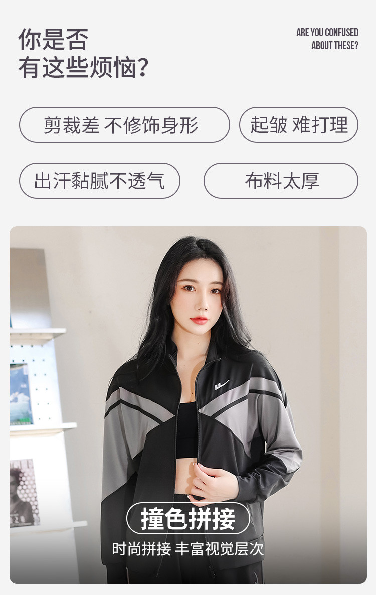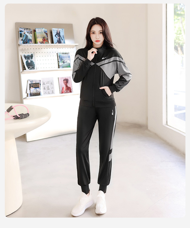 商品名称:运动套装女羽毛球服两件套拼接撞色休闲服时尚跑步健身服套装女 377747