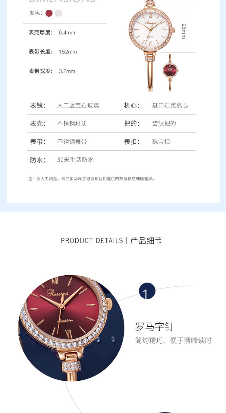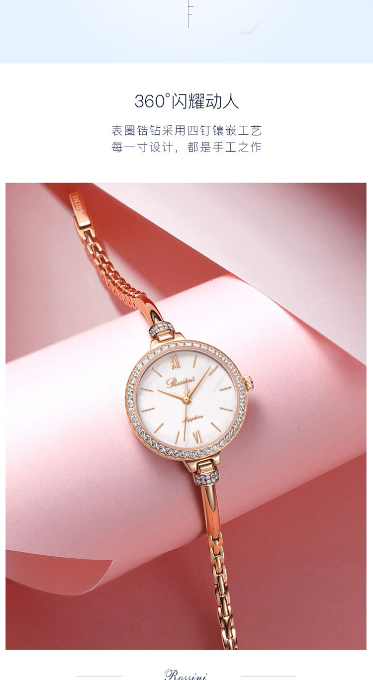 商品名称:Rossini罗西尼 CHIC系列石英手表白盘钢带女表5916G01A