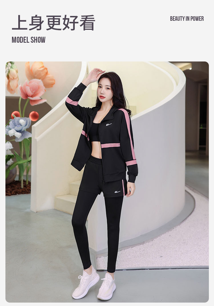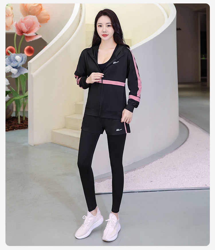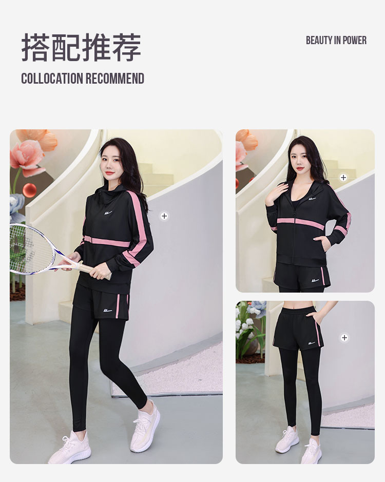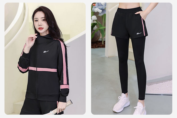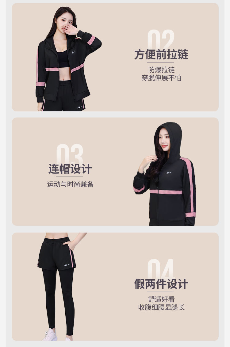 商品名称:瑜伽服套装女宽松时尚显瘦跑步健身连帽拉链休闲运动套装女士 950355