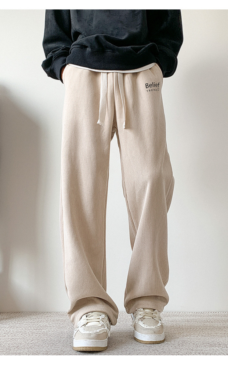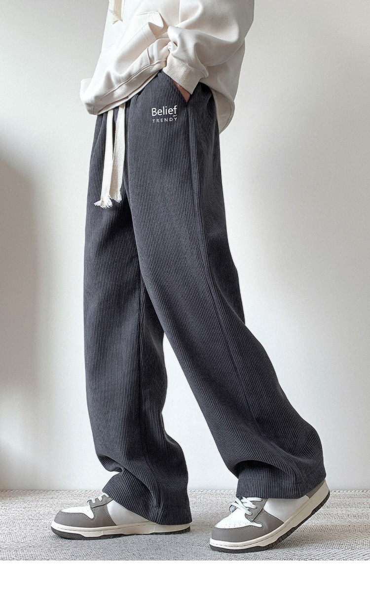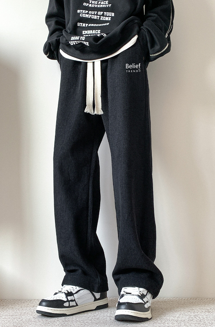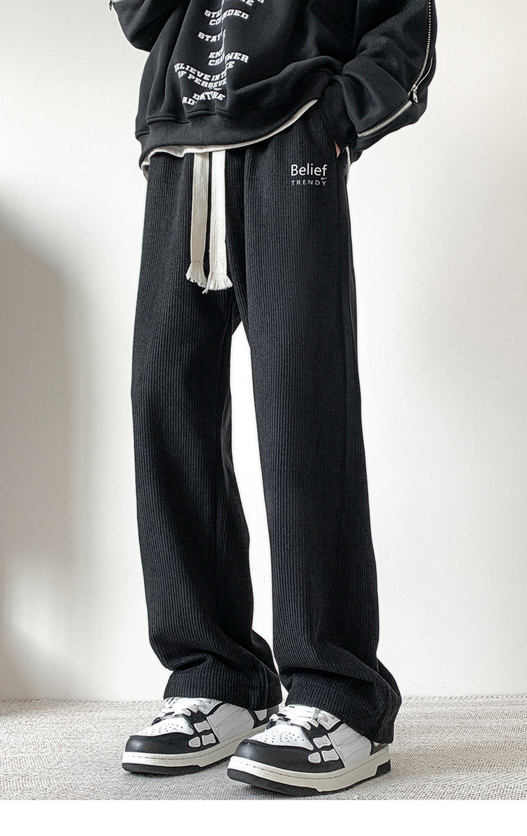 美式灯芯绒运动裤子男士直筒卫裤潮牌阔腿男裤休闲长裤 023955