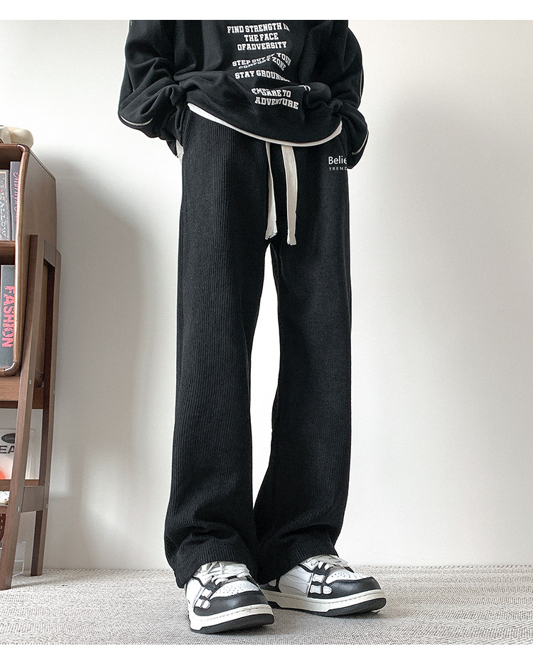 美式灯芯绒运动裤子男士直筒卫裤潮牌阔腿男裤休闲长裤 539091