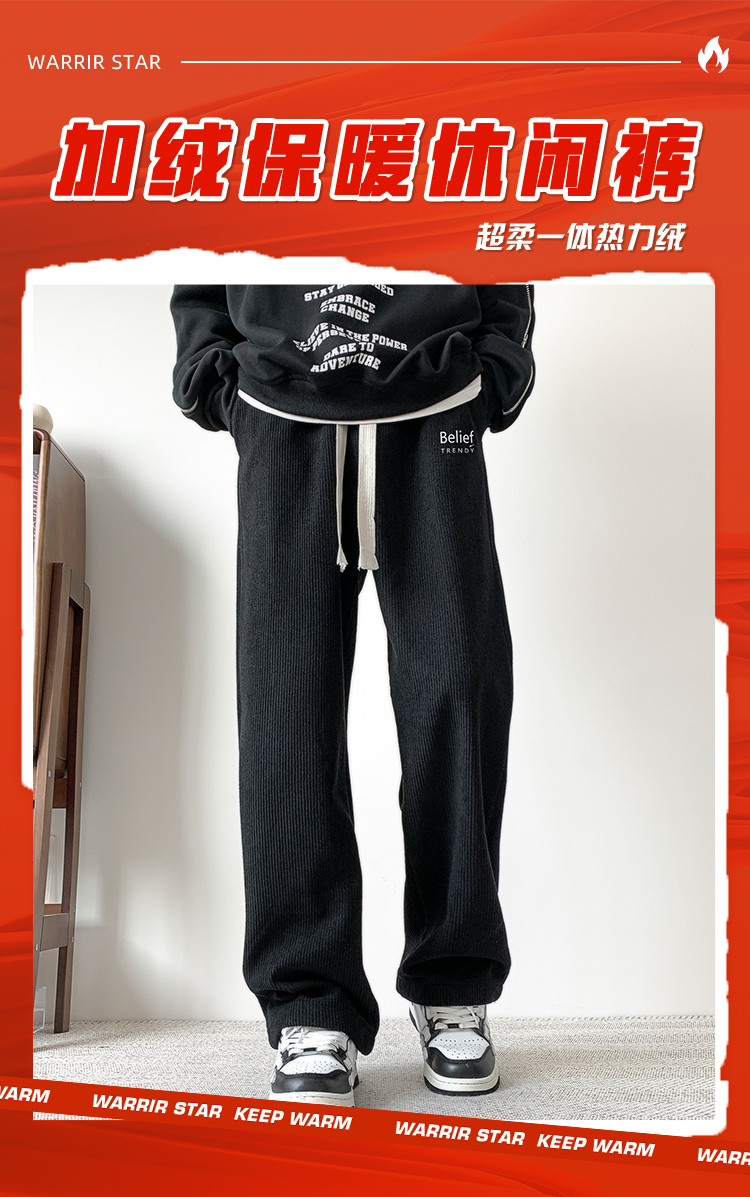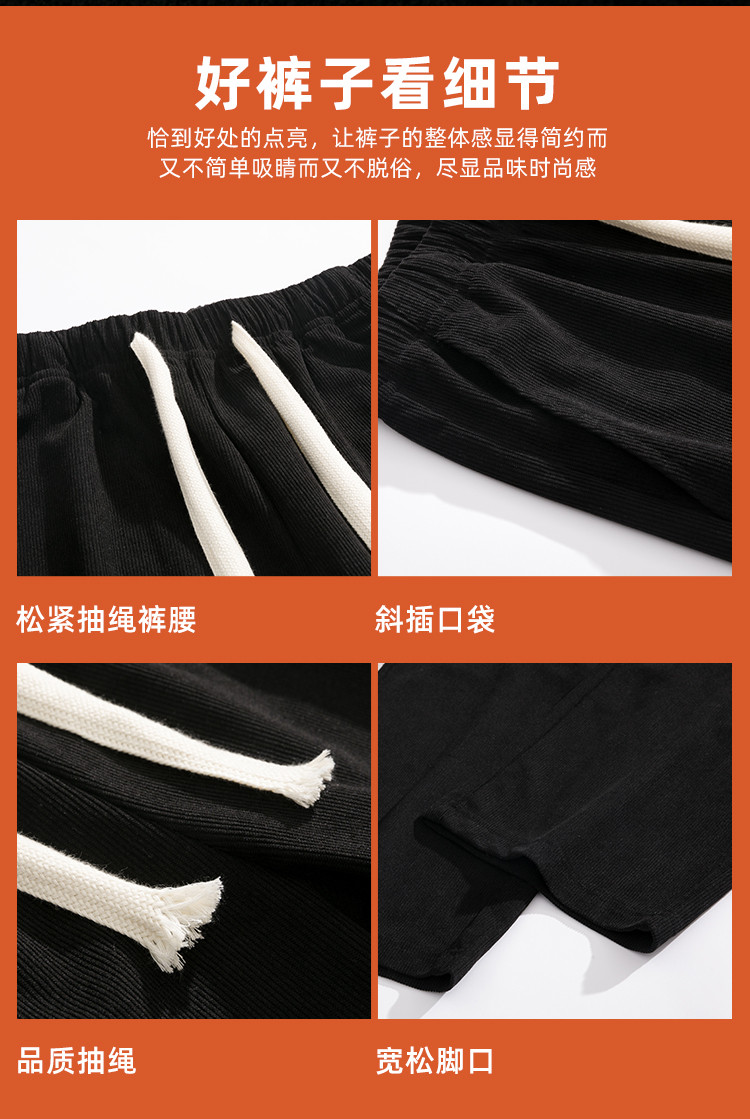 商品名称:美式灯芯绒运动裤子男士直筒卫裤潮牌阔腿男裤休闲长裤 539091
