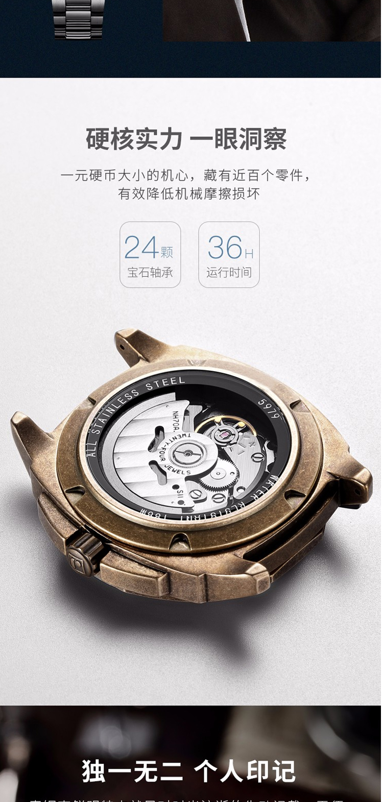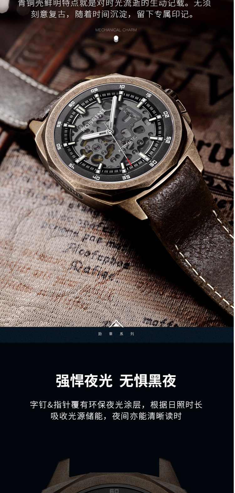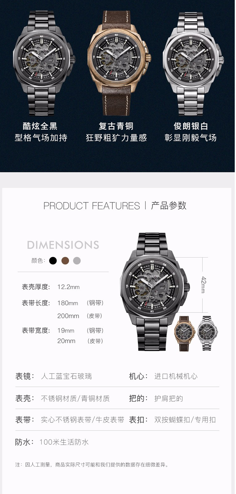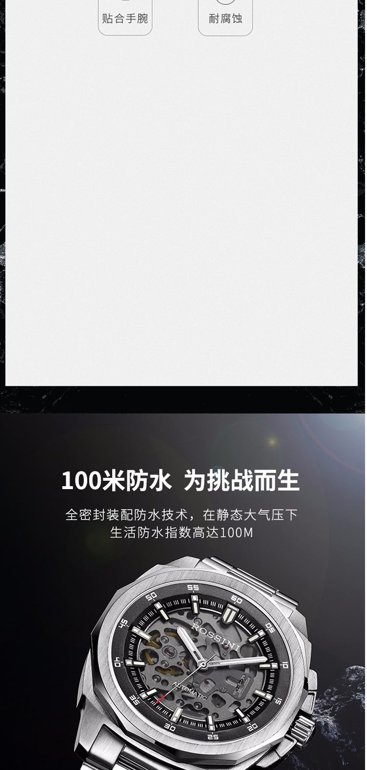 商品名称:Rossini罗西尼 勋章系列 自动机械手表潮流时尚酷黑镂空黑盘钢带男表 5979B02B