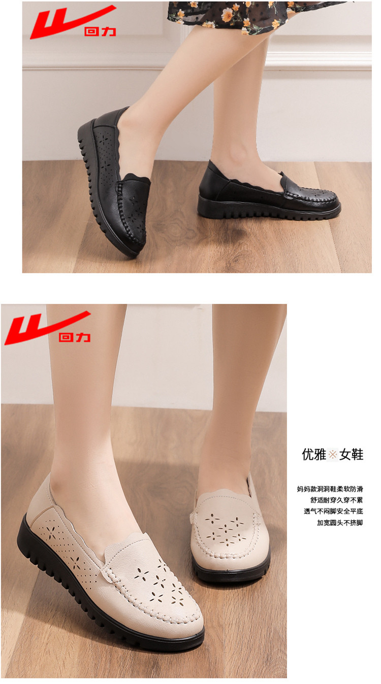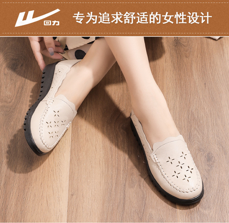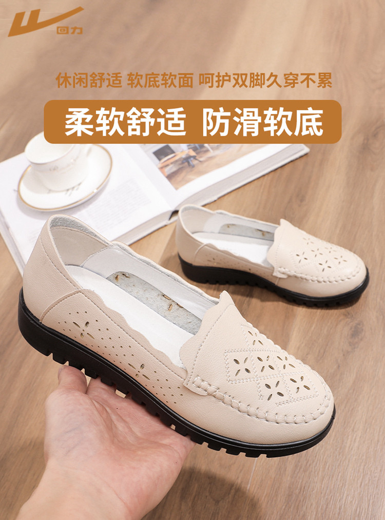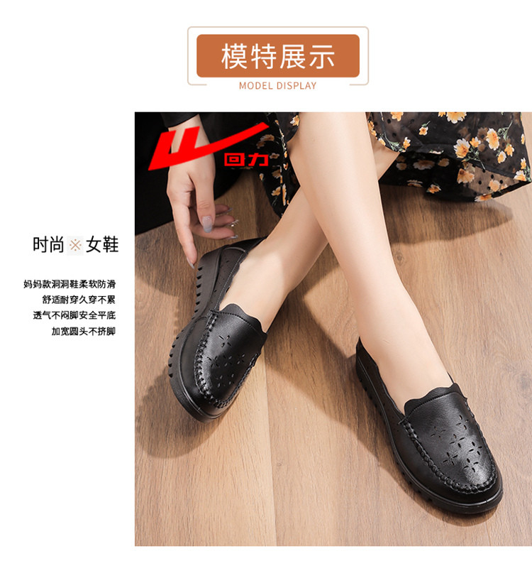 商品名称:25夏季女鞋镂空透气妈妈鞋中年轻便舒适皮面乐福鞋女士大码单鞋 576596