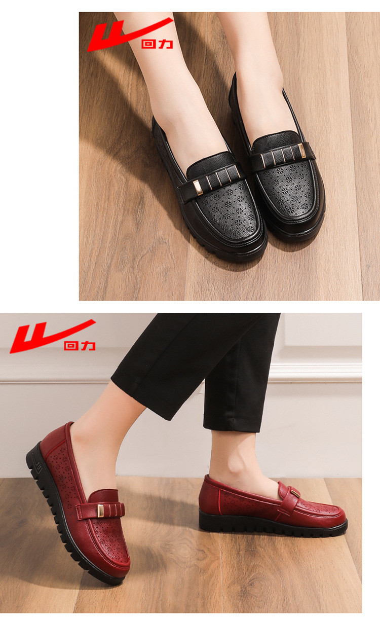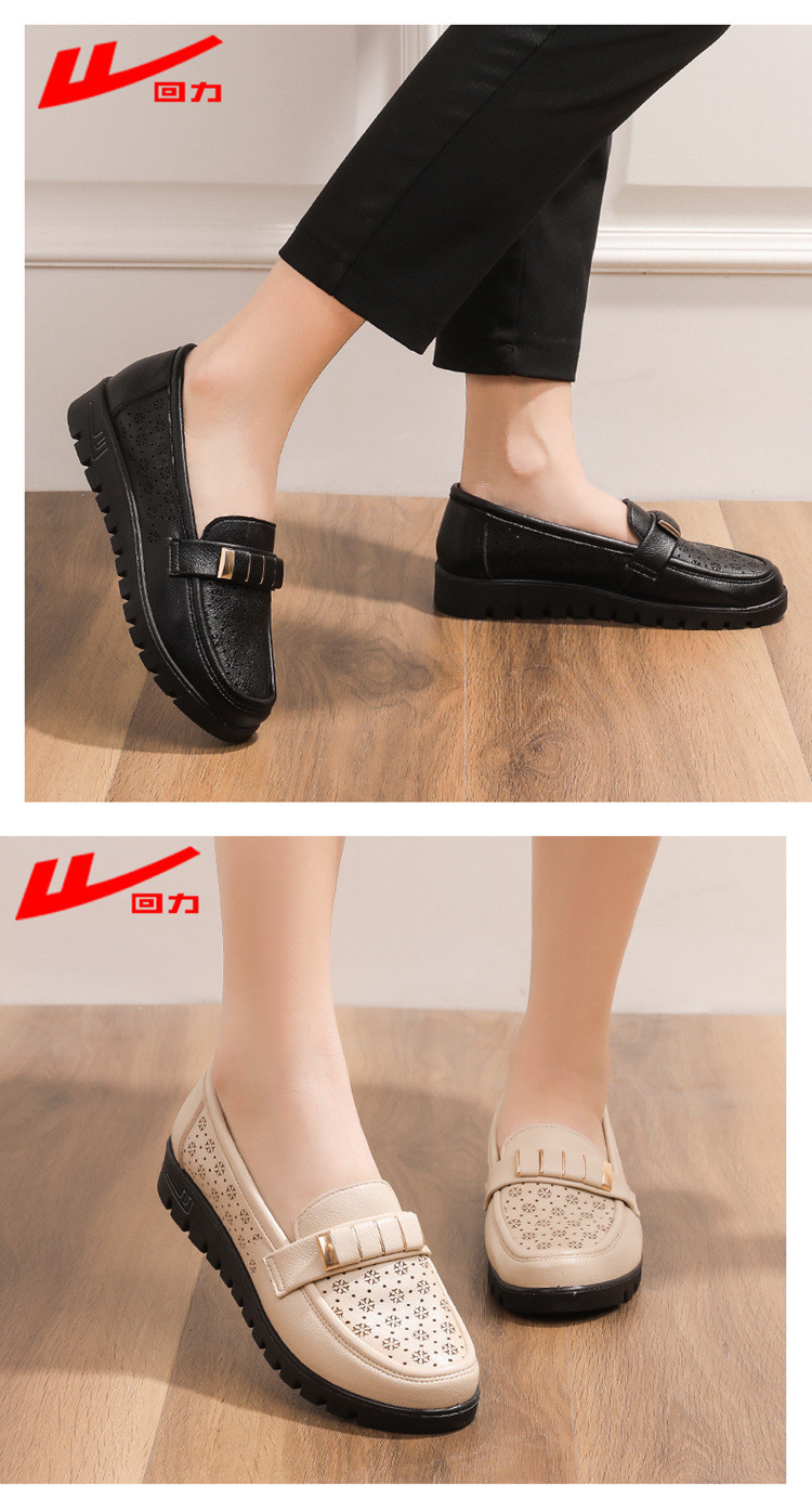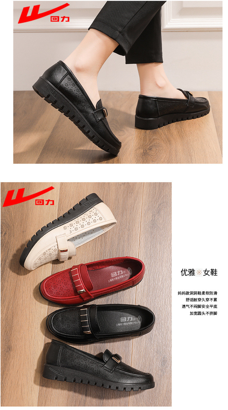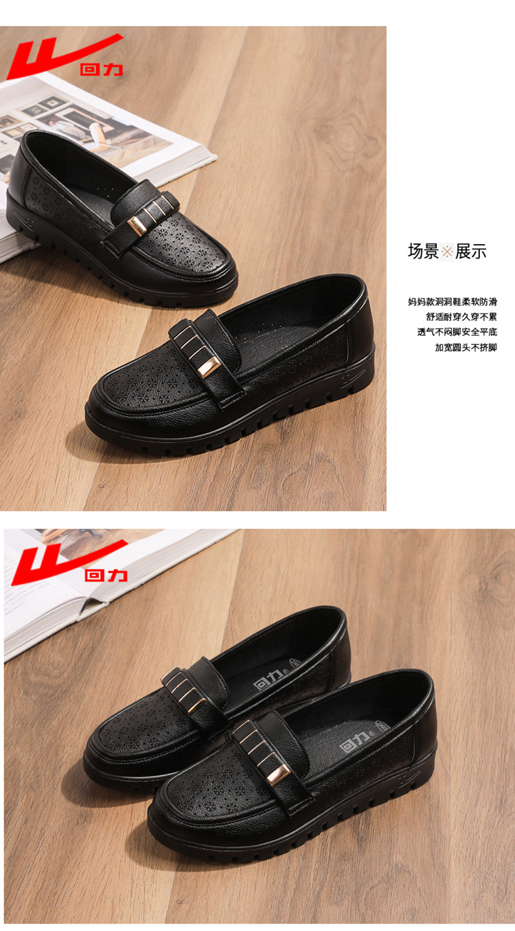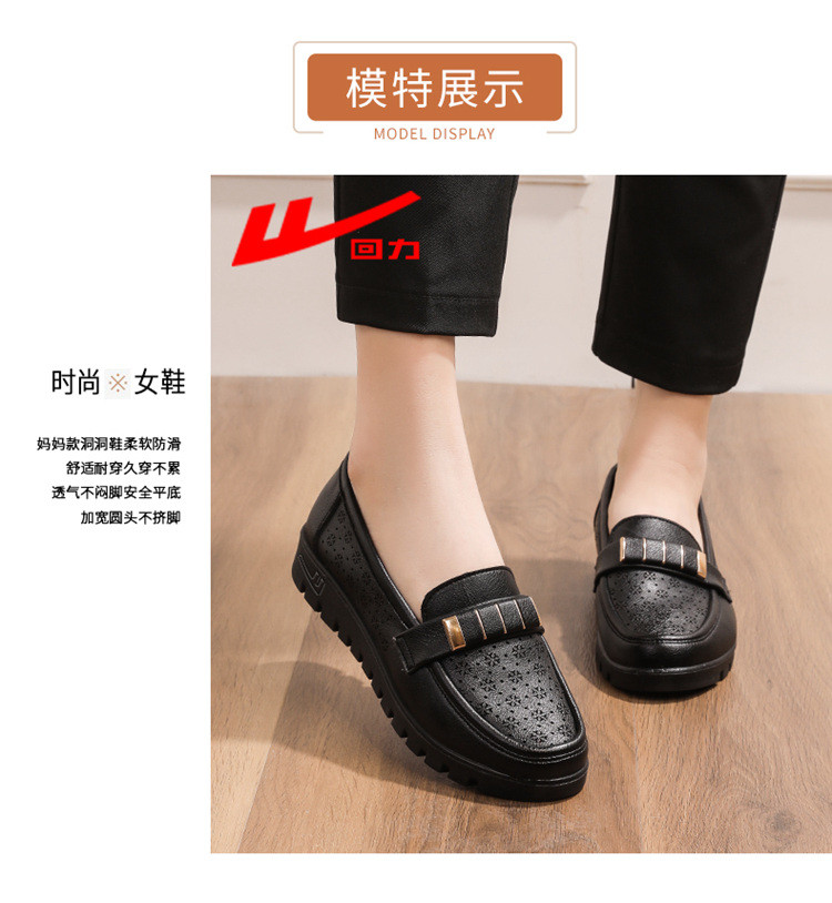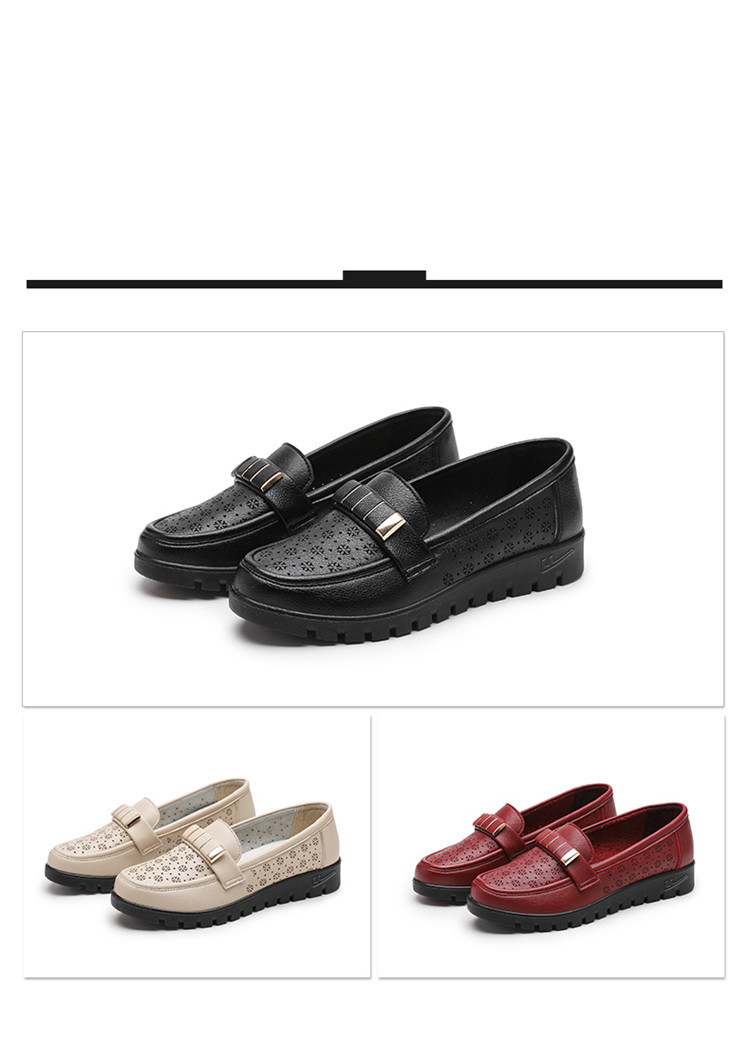 商品名称:妈妈鞋单鞋中年皮鞋中老年人夏季平底软底闰月女鞋透气洞洞鞋凉鞋 314452