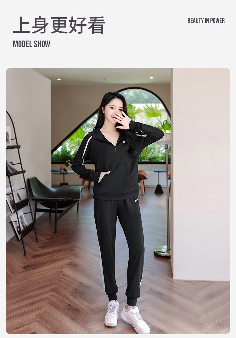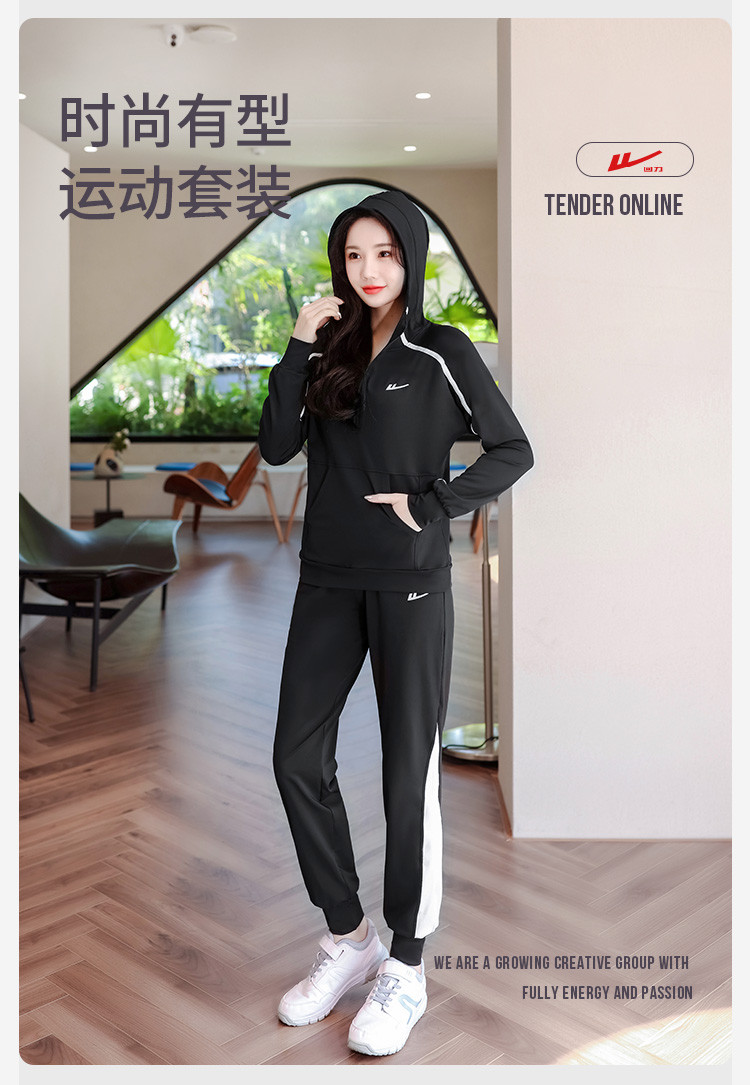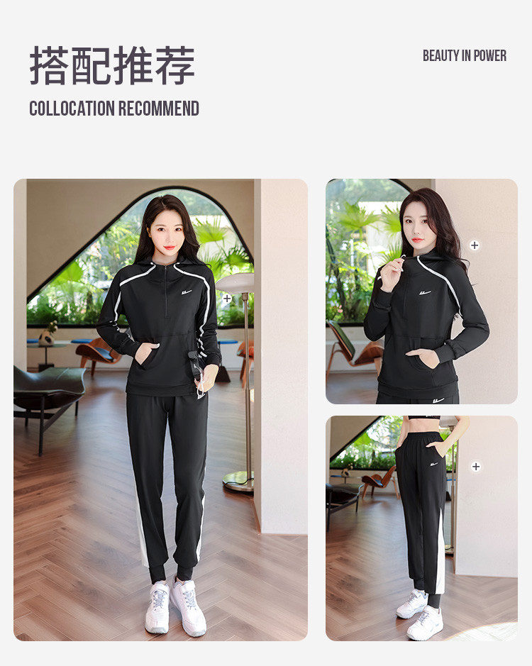 商品名称:【2件套】运动服套装女休闲时尚连帽长袖长裤宽松跑步运动瑜伽服 954451