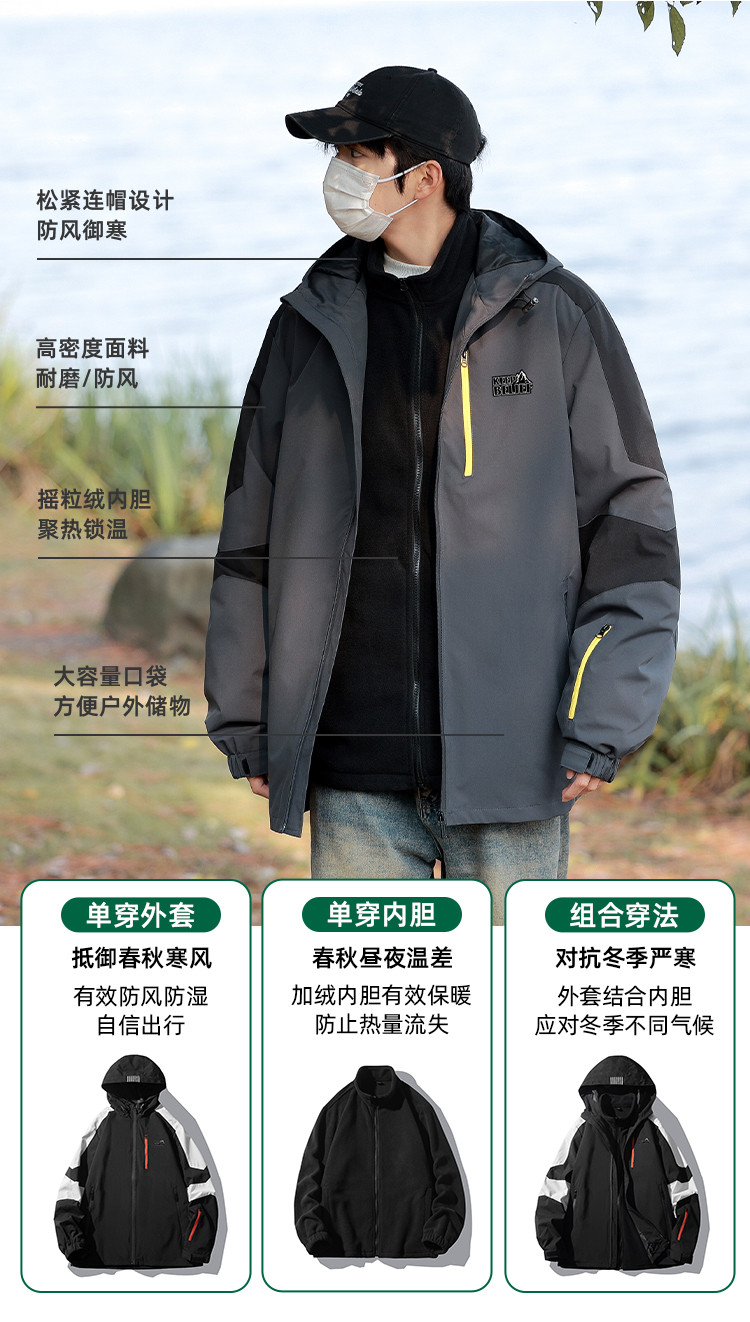 【保暖两件套】男女三合一外套运动户外防风加厚登山服 193555