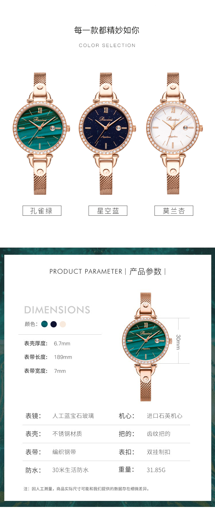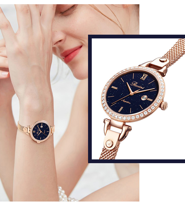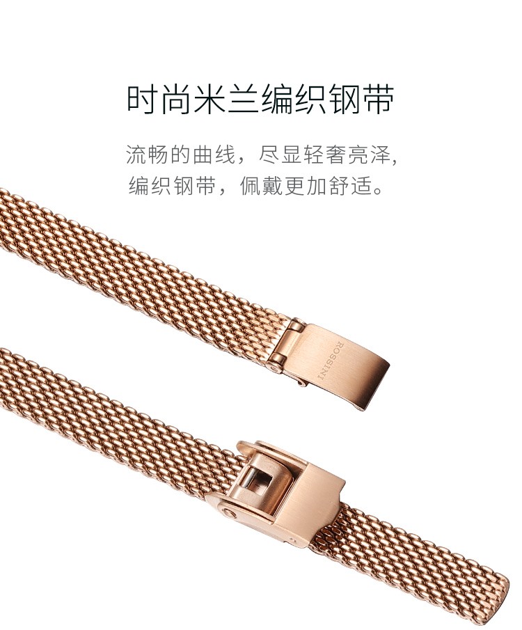 商品名称:Rossini罗西尼 【专柜同款】石英时尚防水手表潮流复古编织钢带手链款白盘女表7898G01C