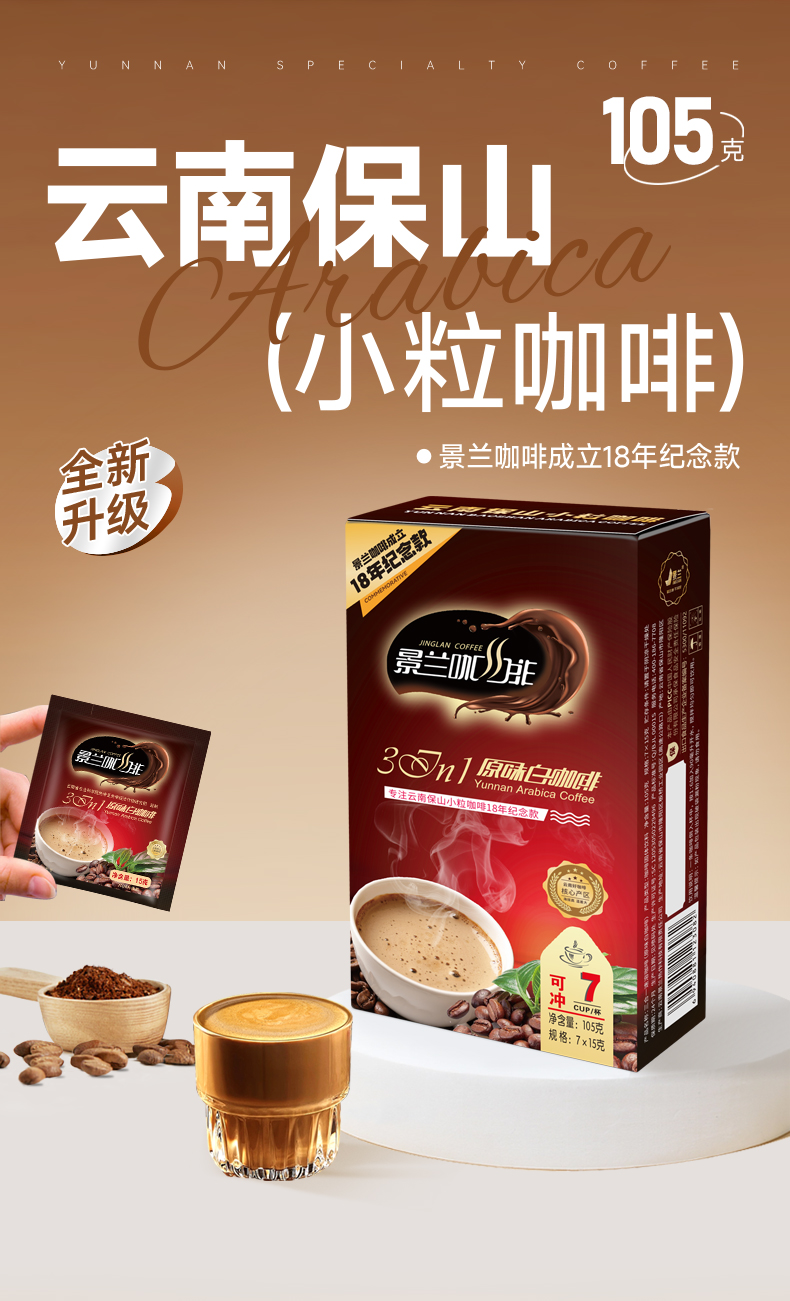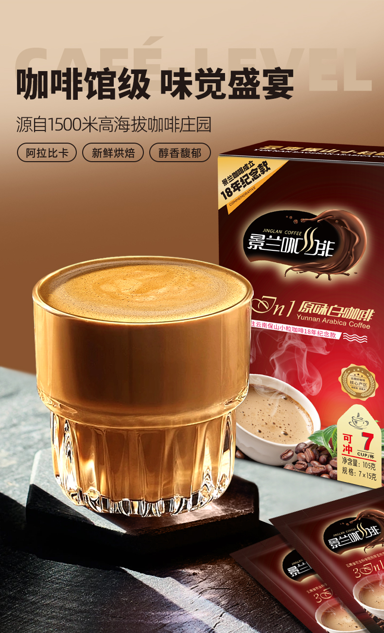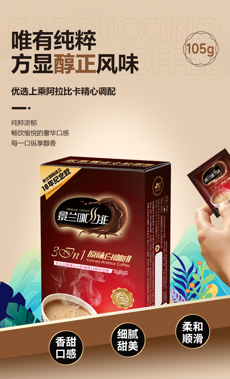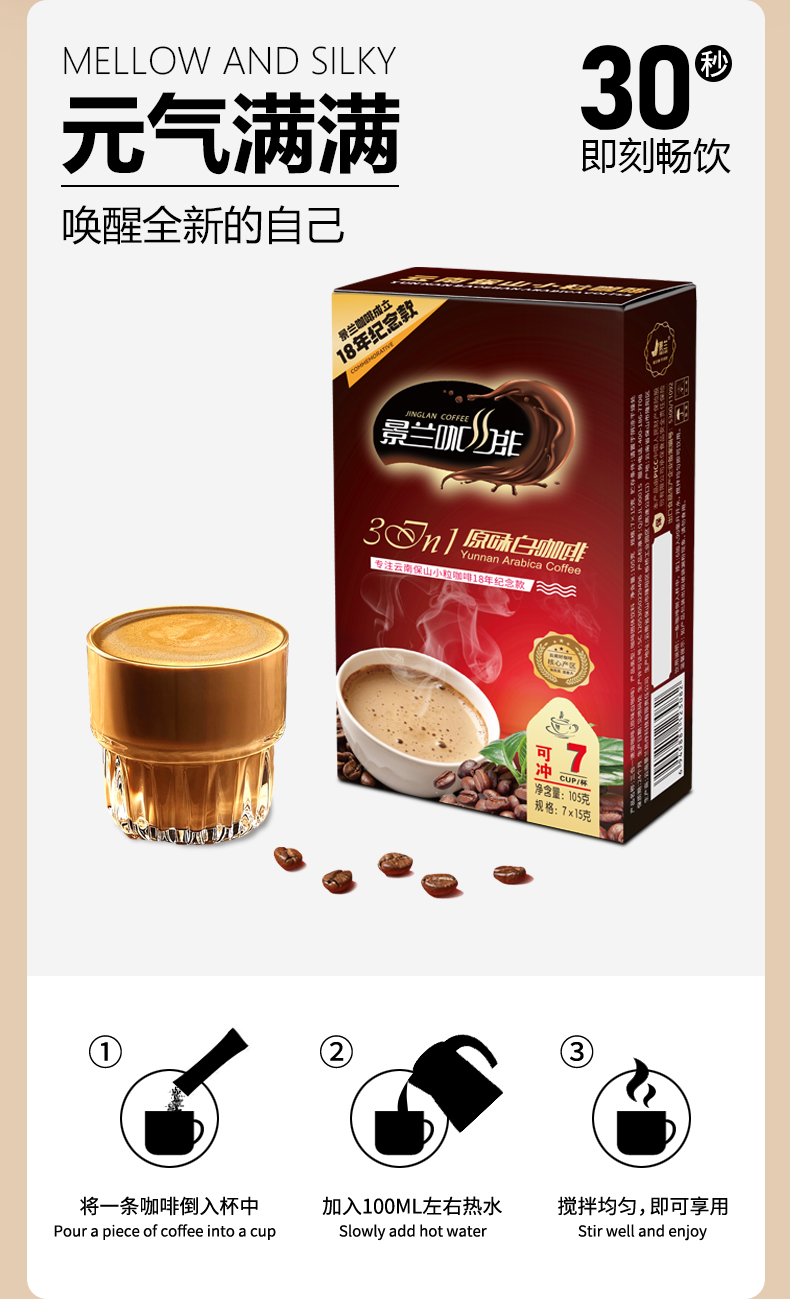 商品名称:景兰 红款原味白咖啡盒装7条 105克*3