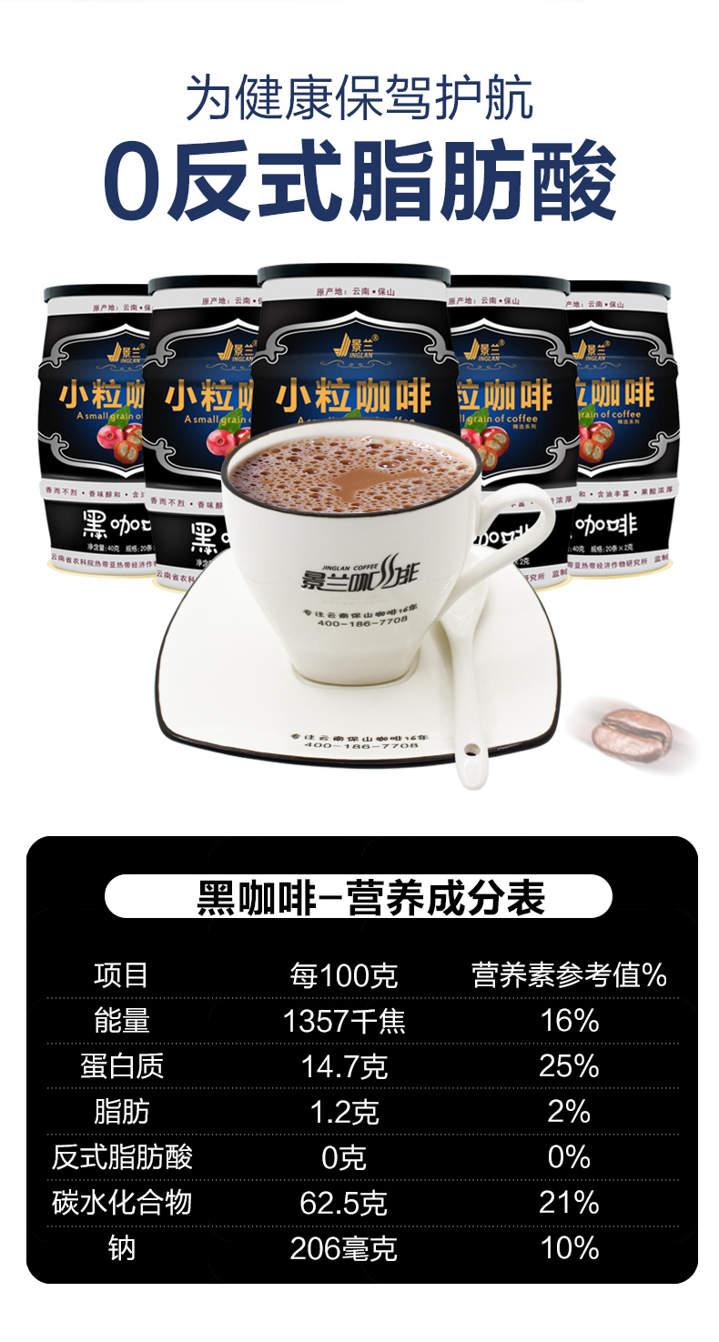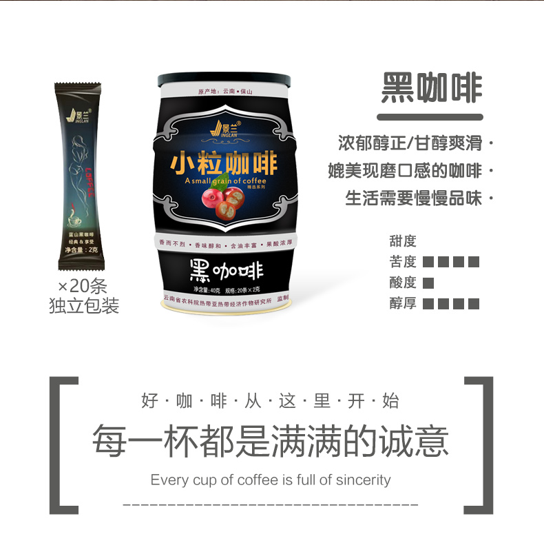 商品名称:景兰罐装三合一速溶咖啡2g*20条/袋 云南小粒咖啡独立小袋