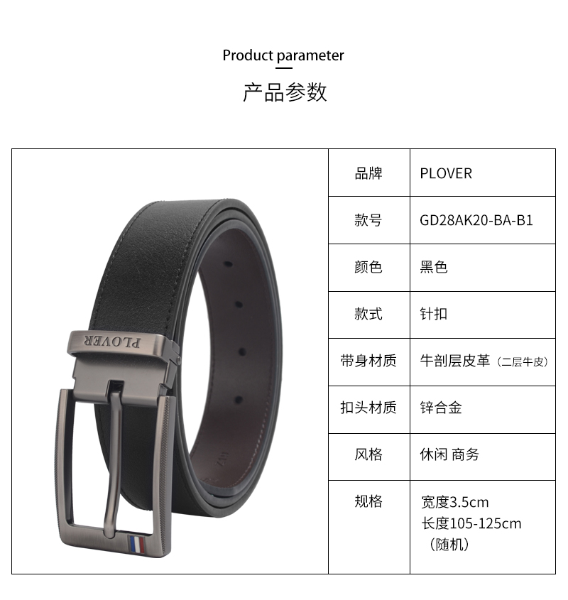 商品名称:PLOVER香港啄木鸟男士针扣皮带GD28AK20-ZA-B1