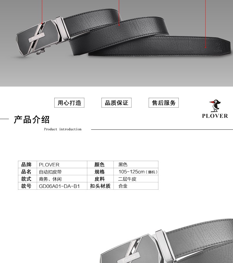 商品名称:LOVER香港啄木鸟男士自动扣皮带GD06A01-DA-B1