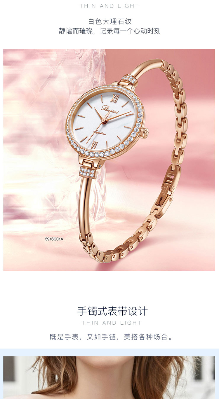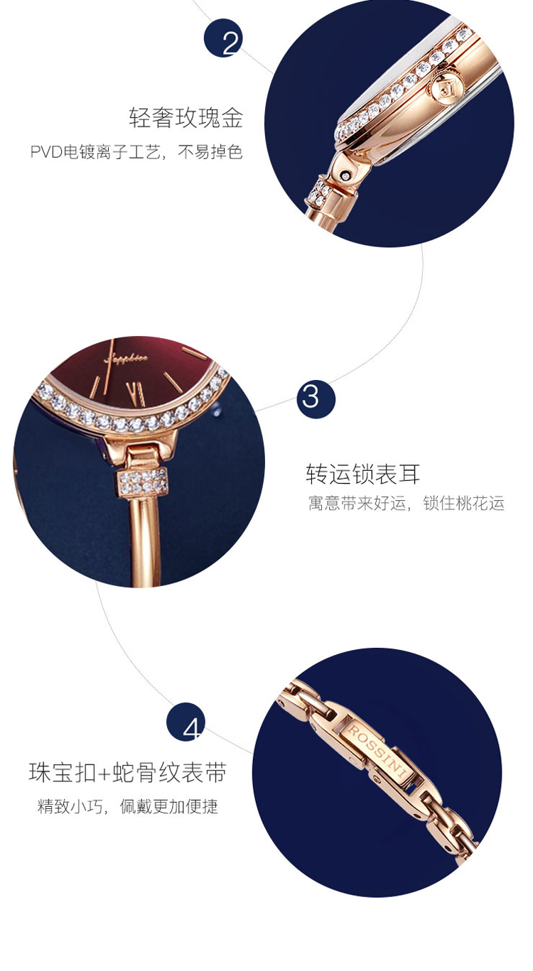 商品名称:Rossini罗西尼 CHIC系列石英手表红盘钢带女表5916G09B