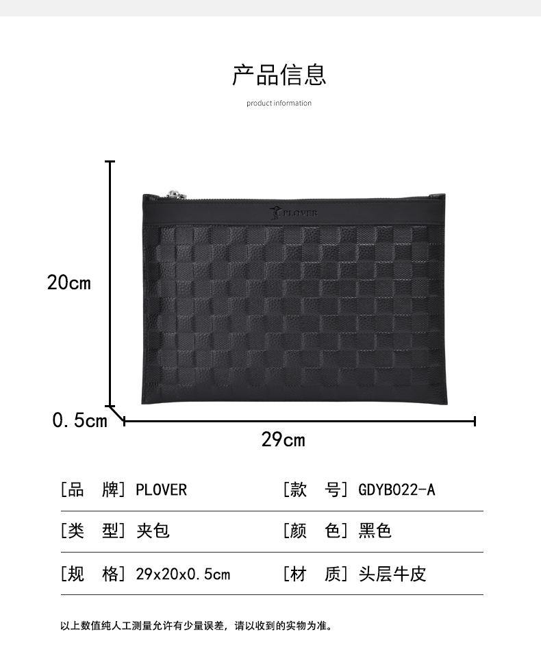 商品名称:PLOVER香港啄木鸟压花立体小方格夹包GDYB022-A