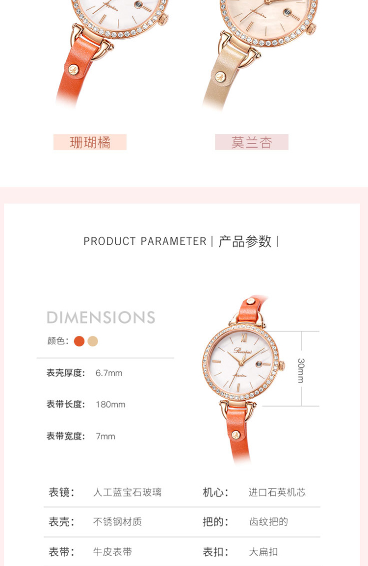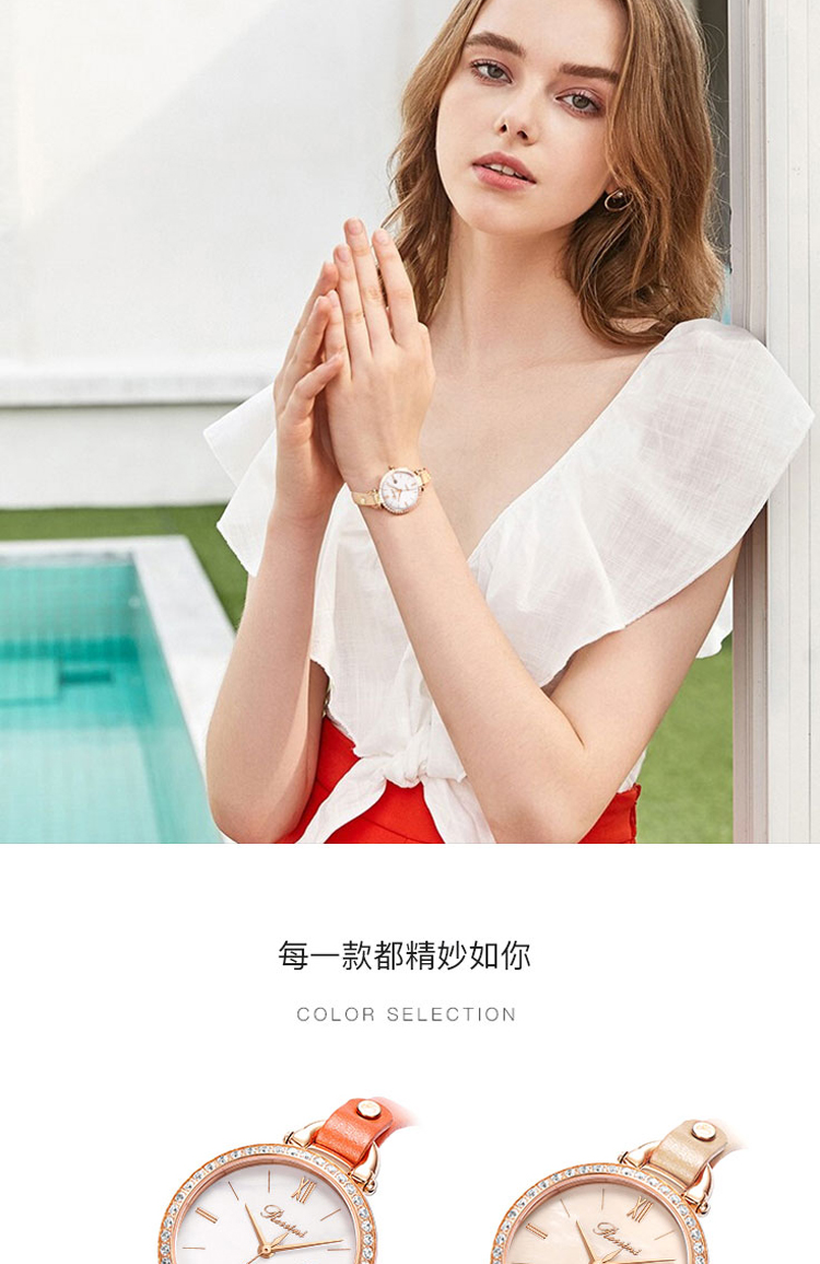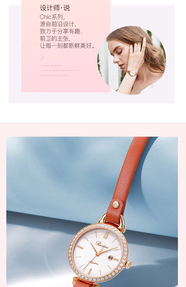商品名称:Rossini罗西尼 CHIC系列石英手表金盘皮带女表 7898G06B