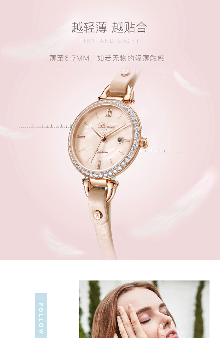 Rossini罗西尼 CHIC系列石英手表金盘皮带女表 7898G06B