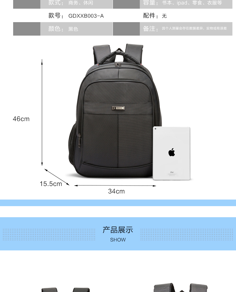商品名称:PLOVER香港啄木鸟时尚多功能双肩背包GDXXB003-A
