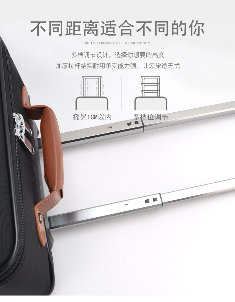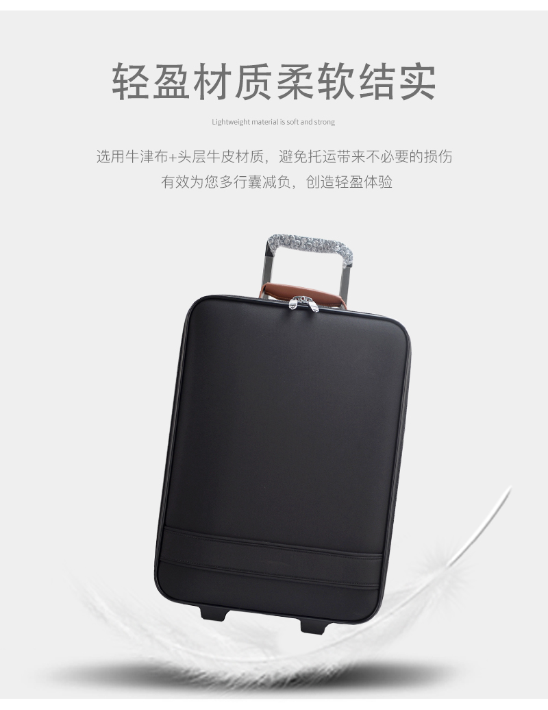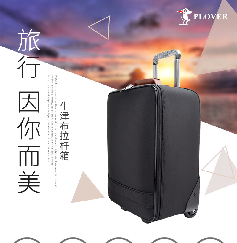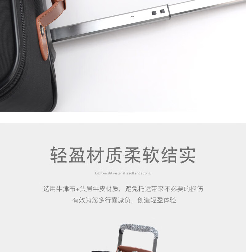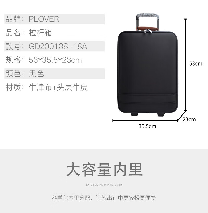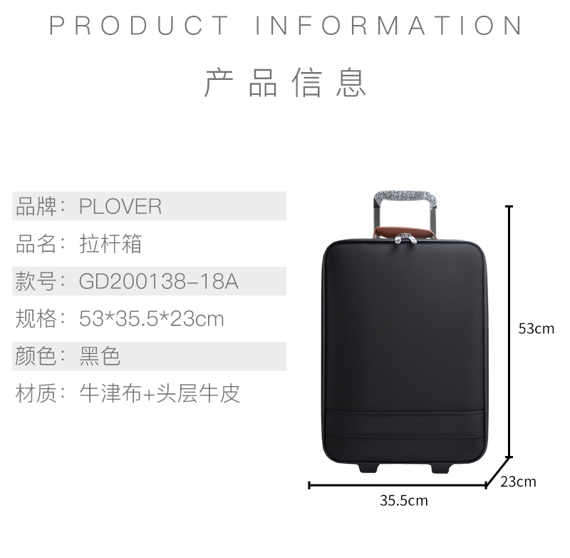 商品名称:PLOVER香港啄木鸟静音轮18寸牛津布+头层牛皮拉杆箱GD200138-18A