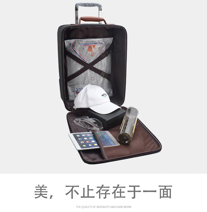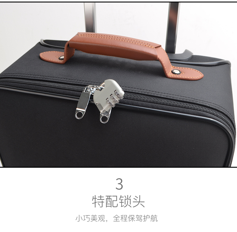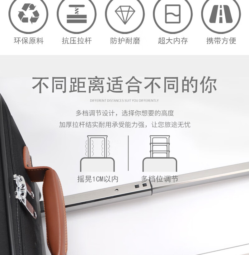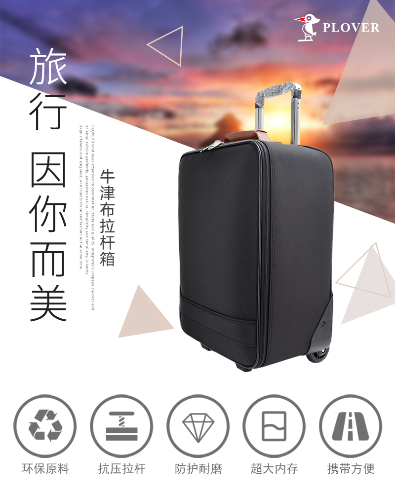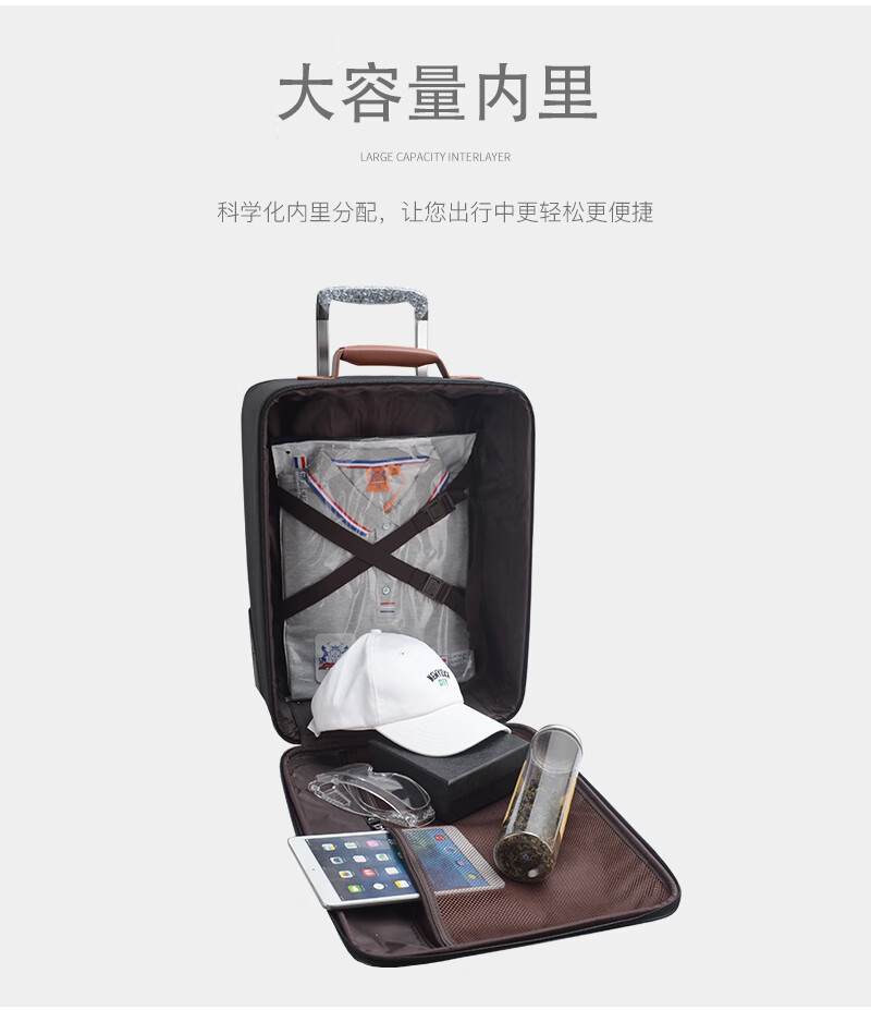商品名称:PLOVER香港啄木鸟静音轮18寸牛津布+头层牛皮拉杆箱GD200138-18A