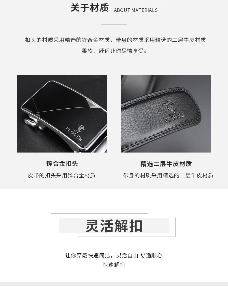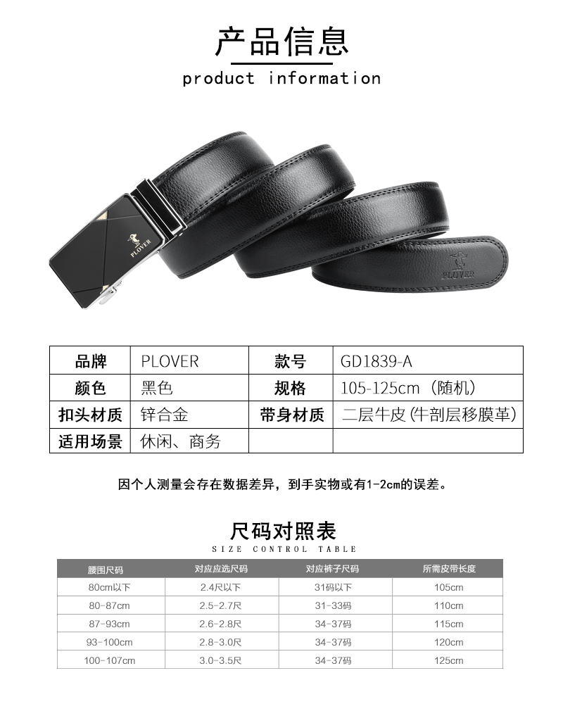 商品名称:PLOVER香港啄木鸟男士自动扣皮带GD1839-A