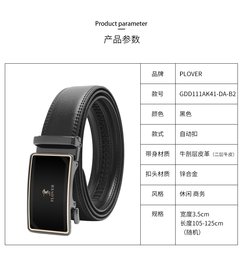 商品名称:PLOVER香港啄木鸟自动扣皮带GDD111AK41-DA-B2