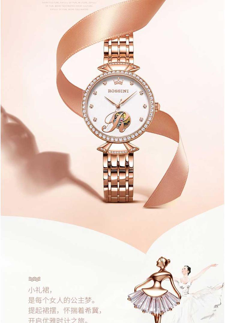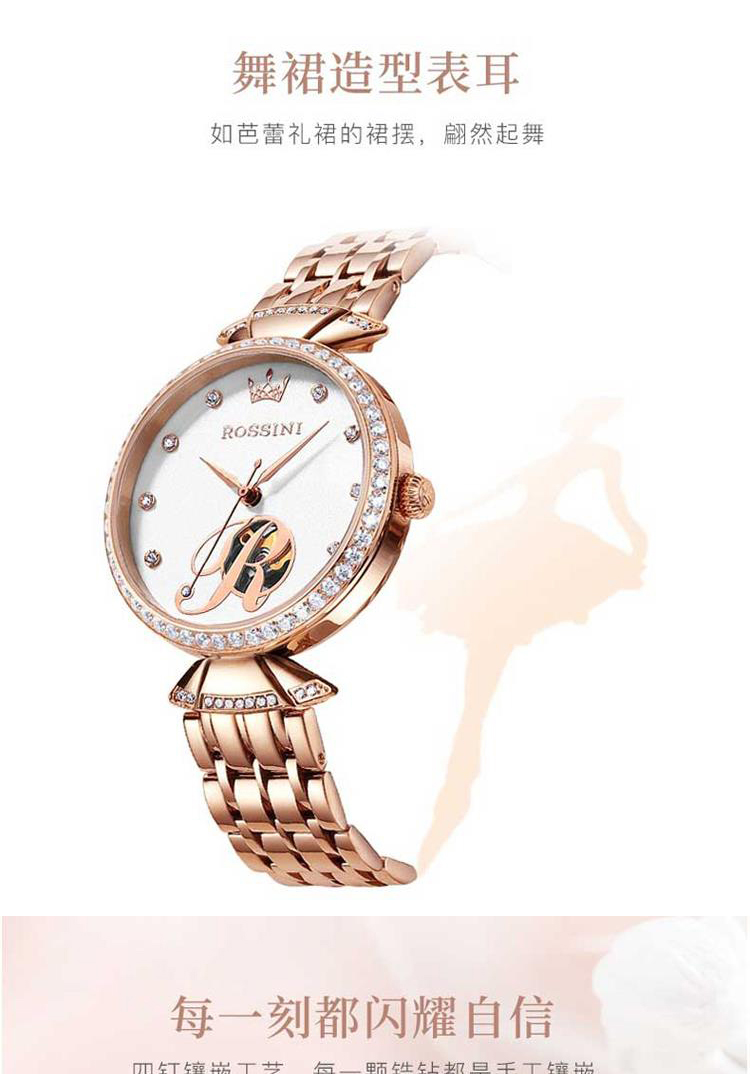 商品名称:ROSSINI罗西尼 机械手表2019年新款白盘钢带女表 5842G01B