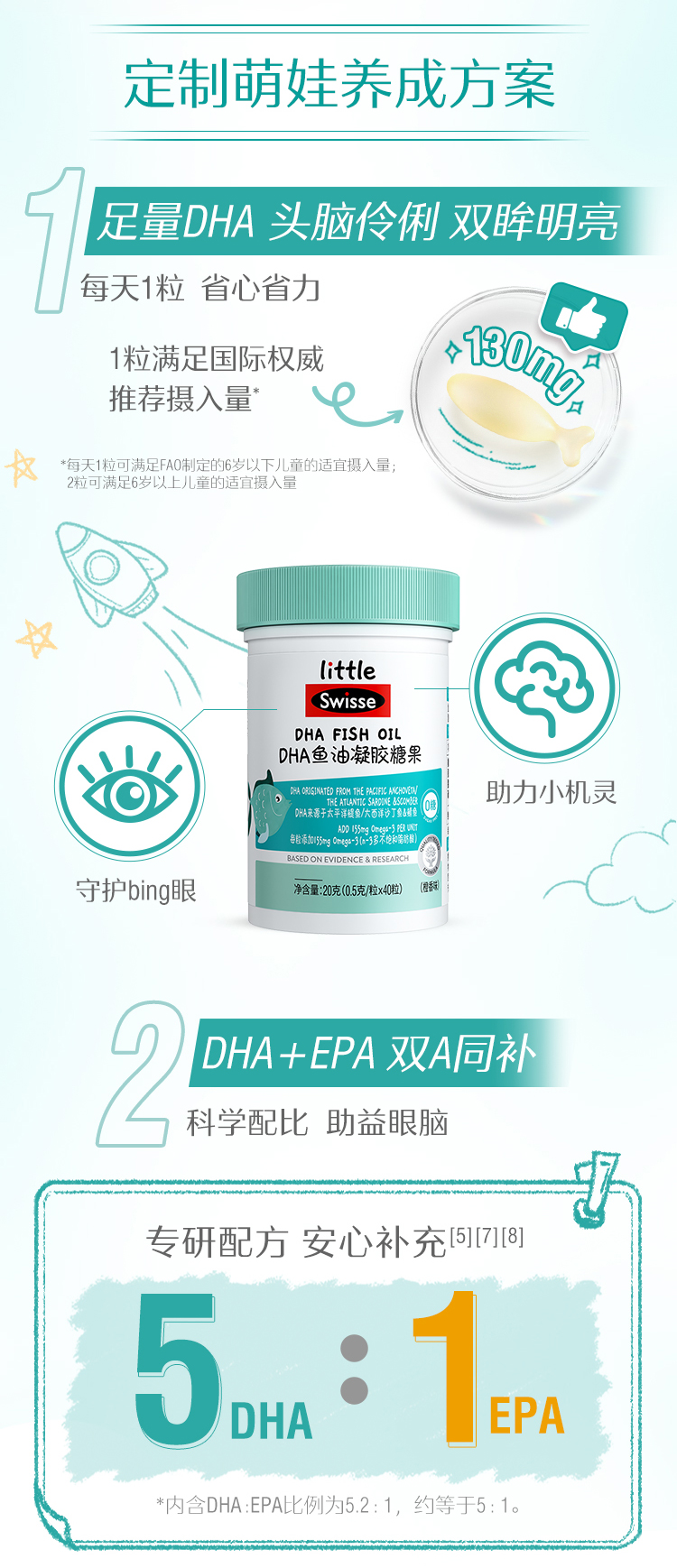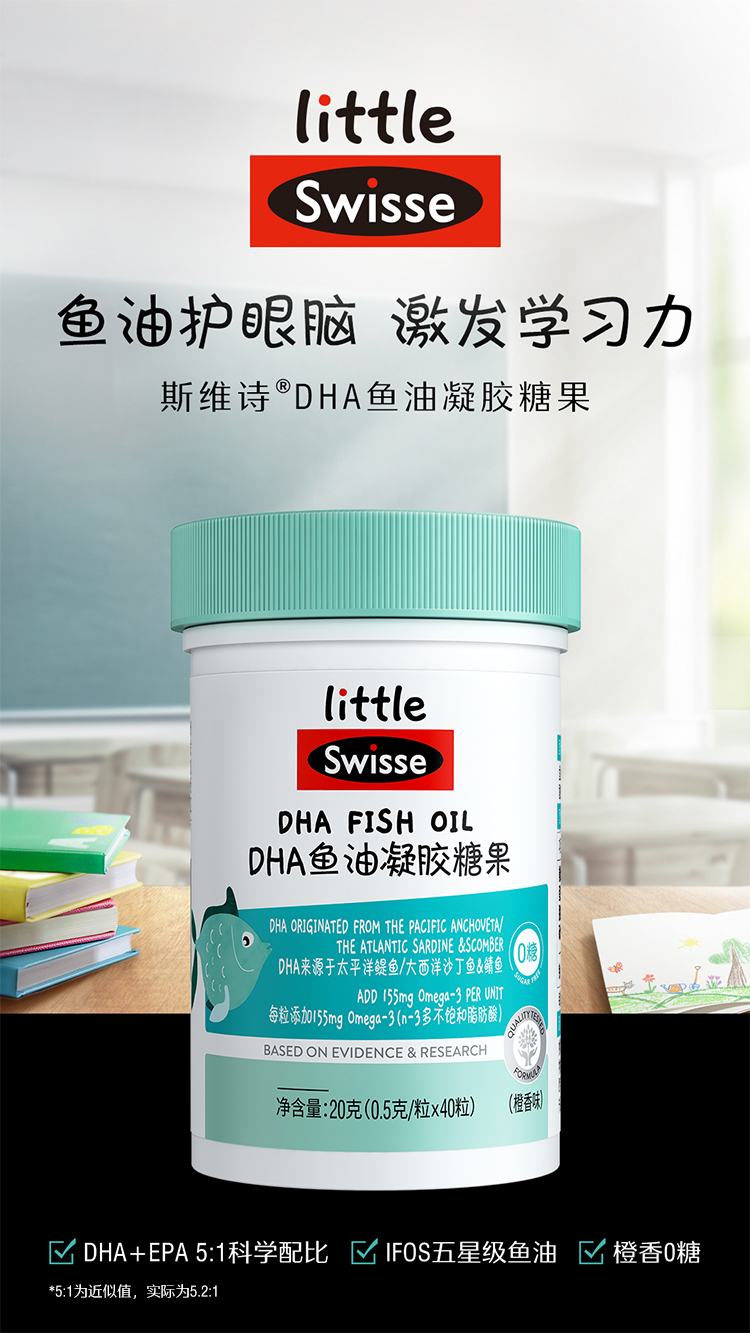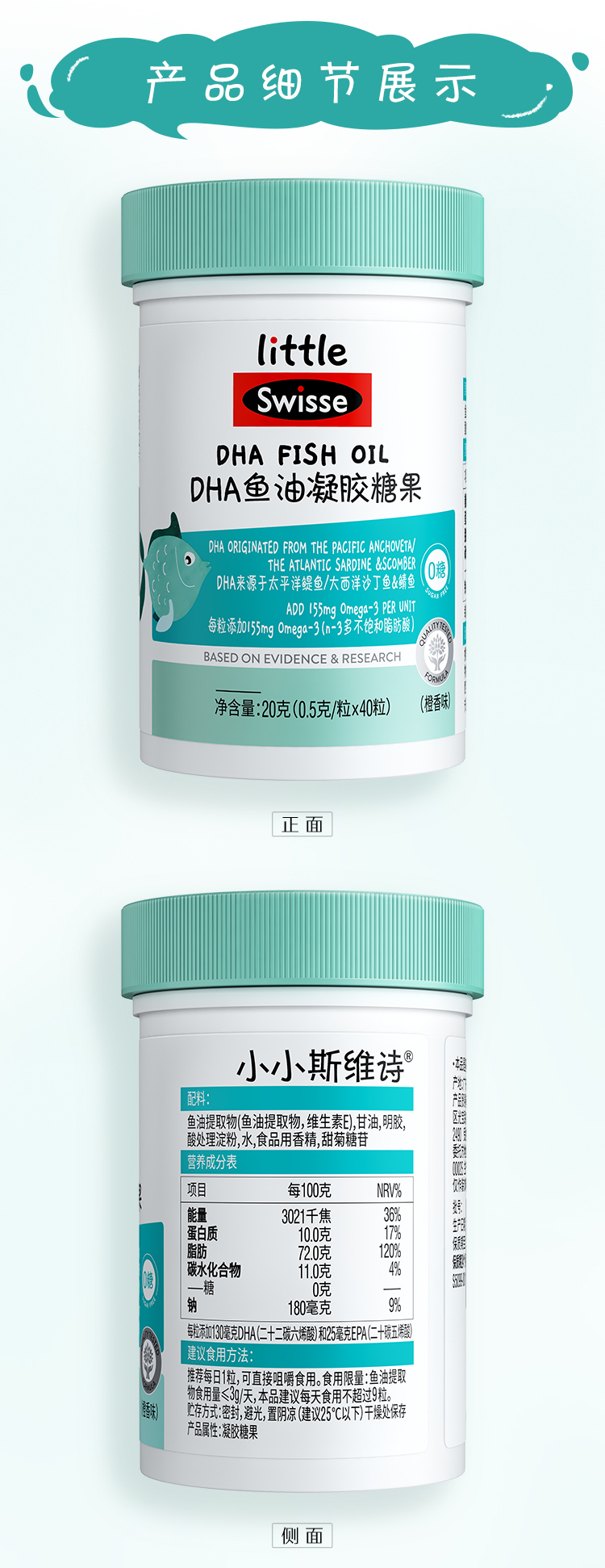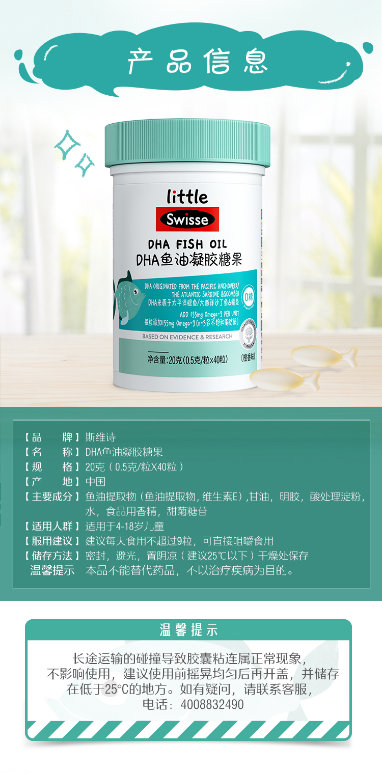 商品名称:Swisse/斯维诗 儿童DHA鱼油凝胶糖果 橙香味(40粒/瓶)