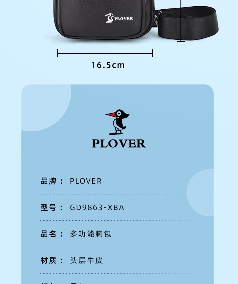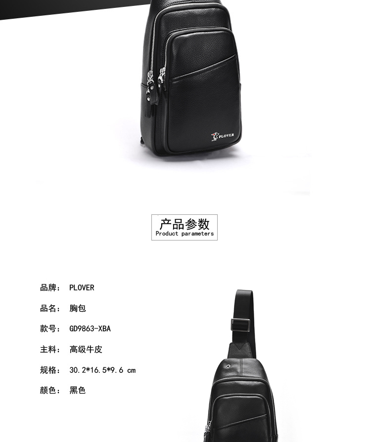 商品名称:PLOVER香港啄木鸟头层牛皮胸包功能性胸包GD9863-XBA
