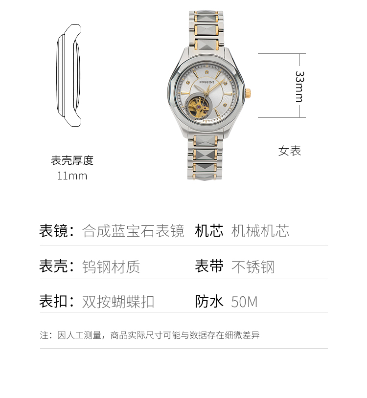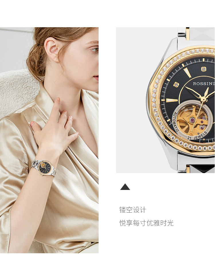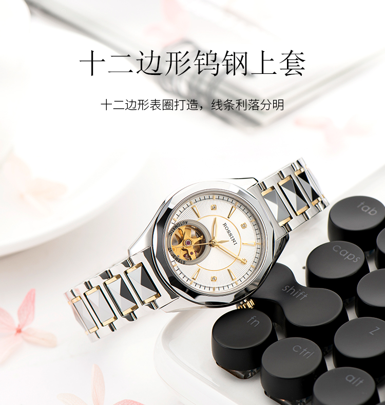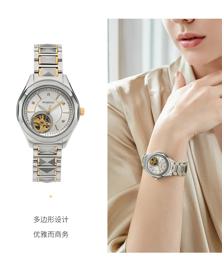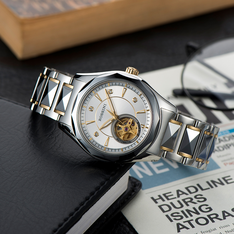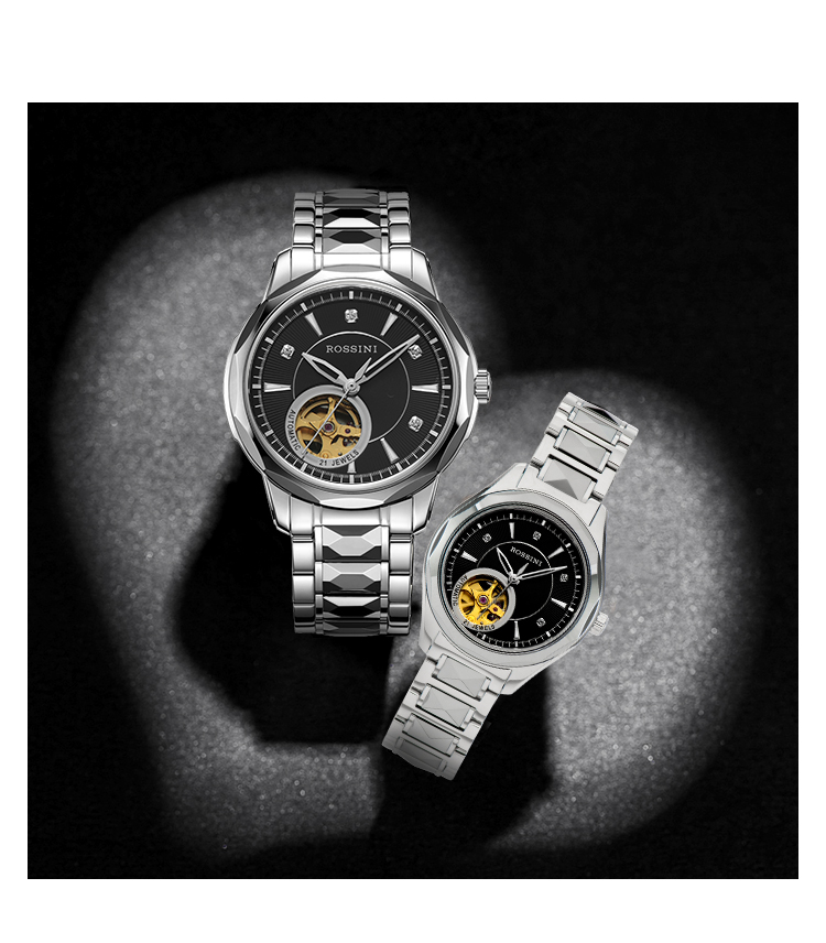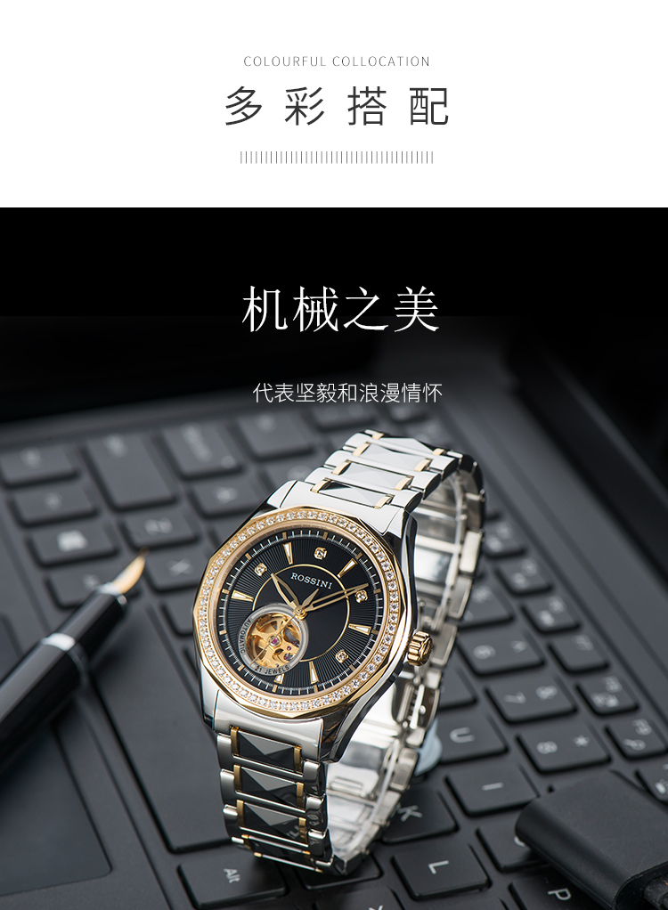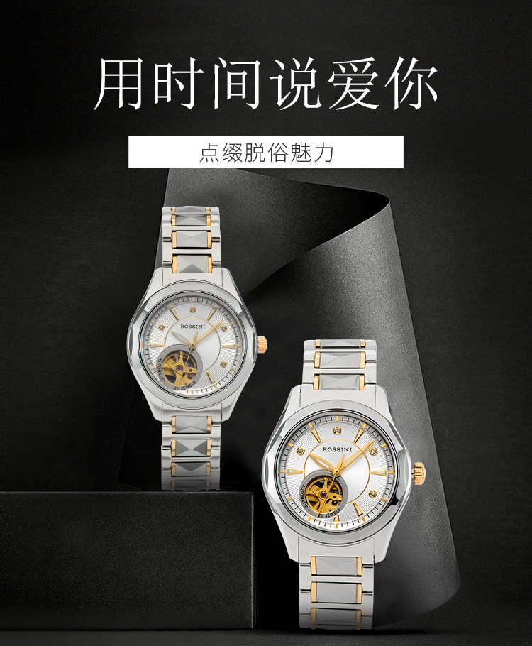 商品名称:Rossini罗西尼 时尚简约商务品质百搭防水机械手表白盘钢带男表7443W01A