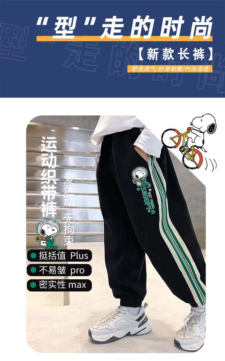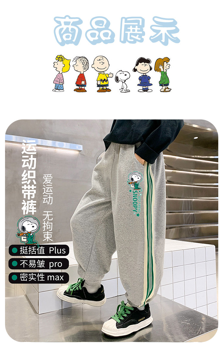 商品名称:男童卫裤2025春季新款时尚洋气儿童卡通舒适运动长裤中大童装 430751