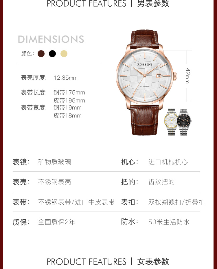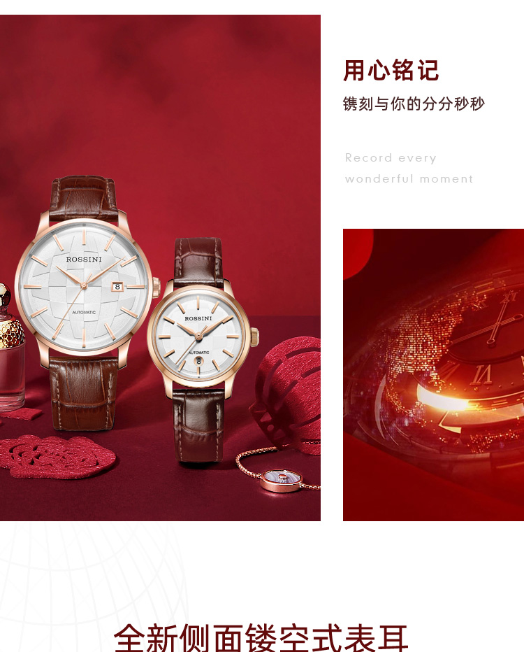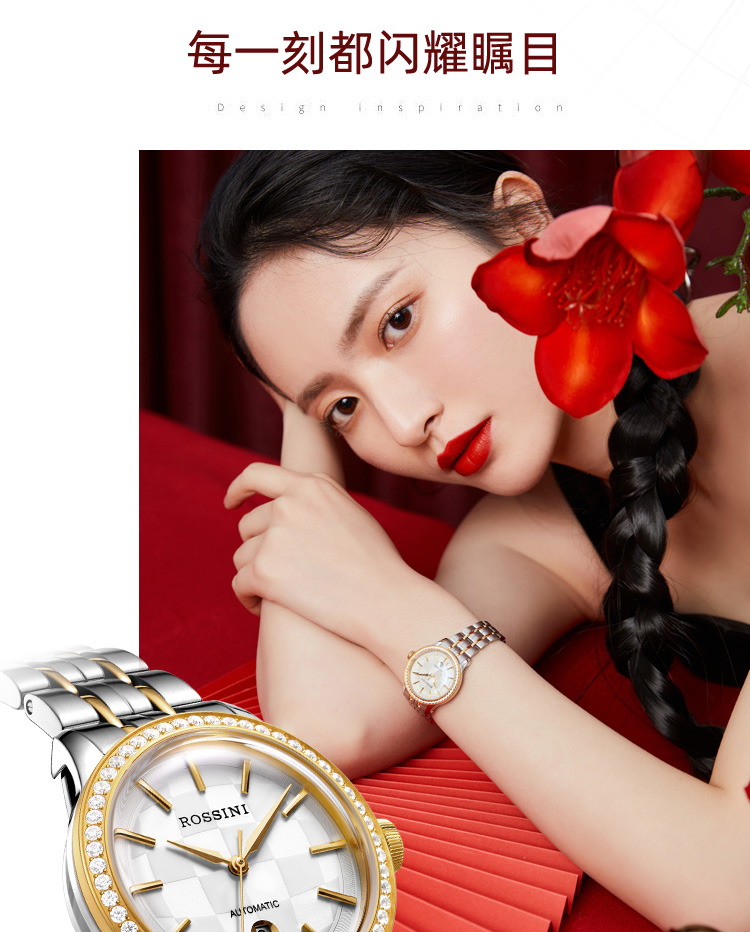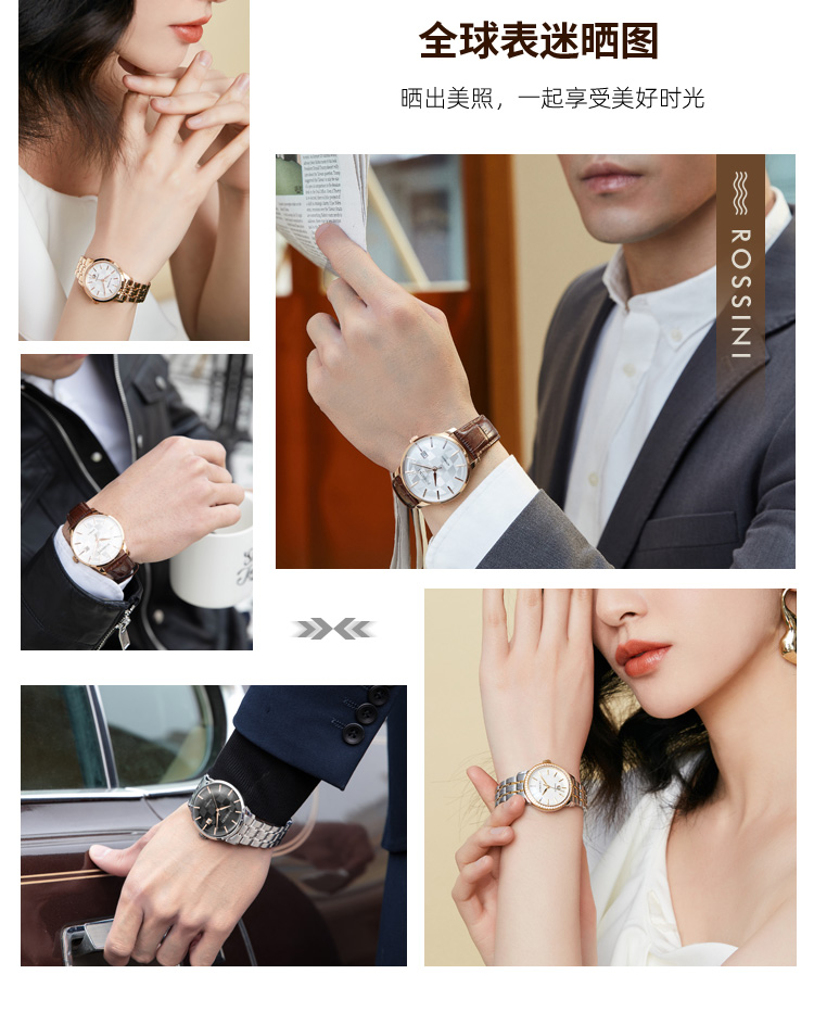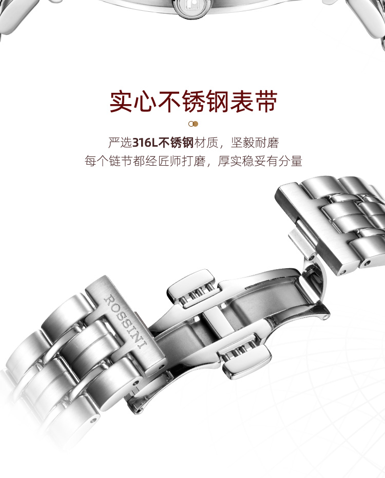 商品名称:Rossini罗西尼 启迪系列环球腕表 机械手表时尚日表防水休闲白盘钢带男表50027T01B