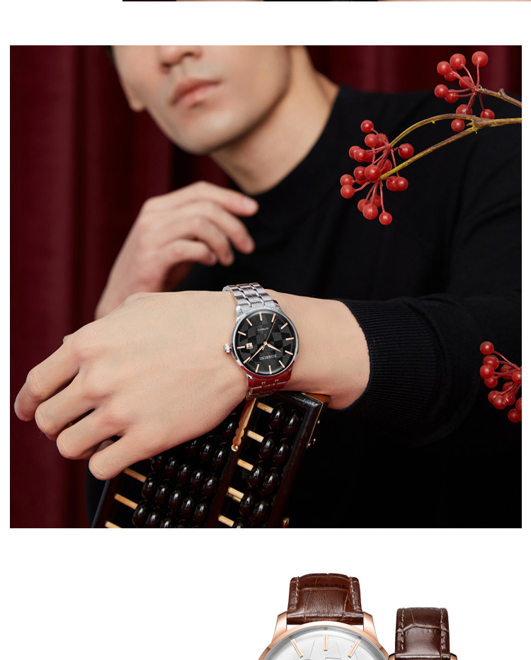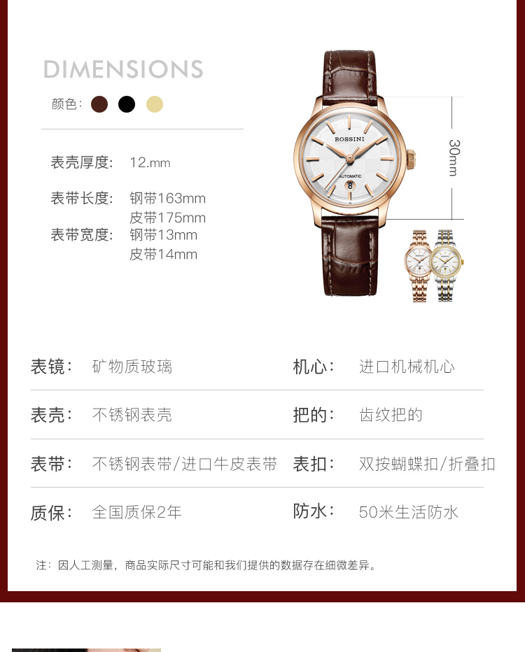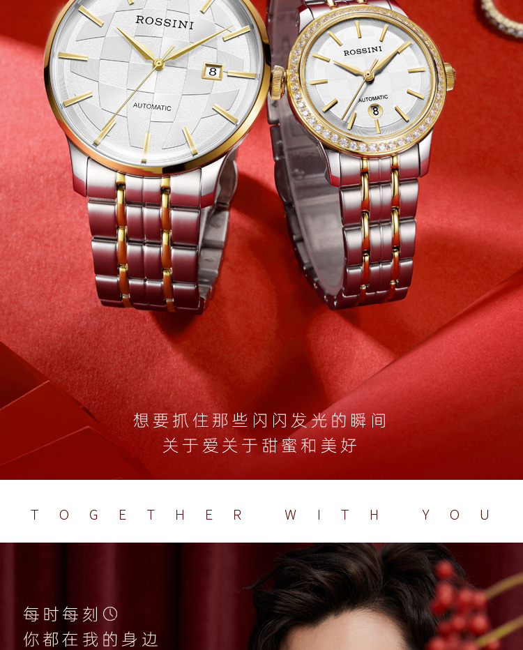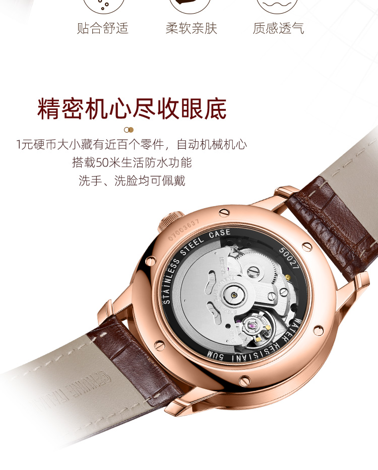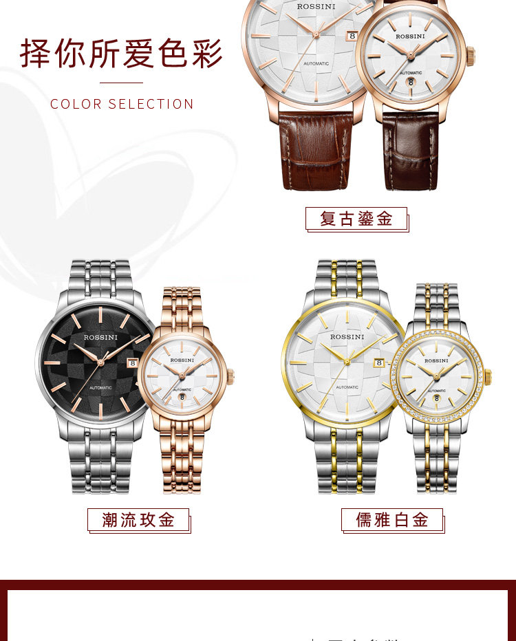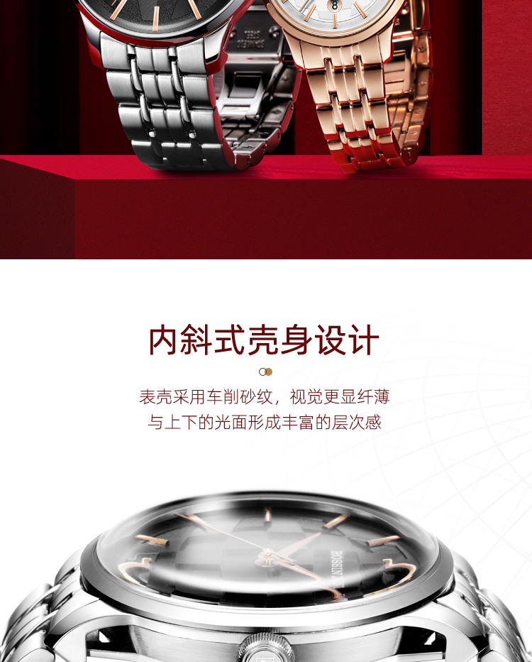 商品名称:Rossini罗西尼 启迪系列环球腕表 机械手表时尚日表防水休闲白盘钢带男表50027T01B