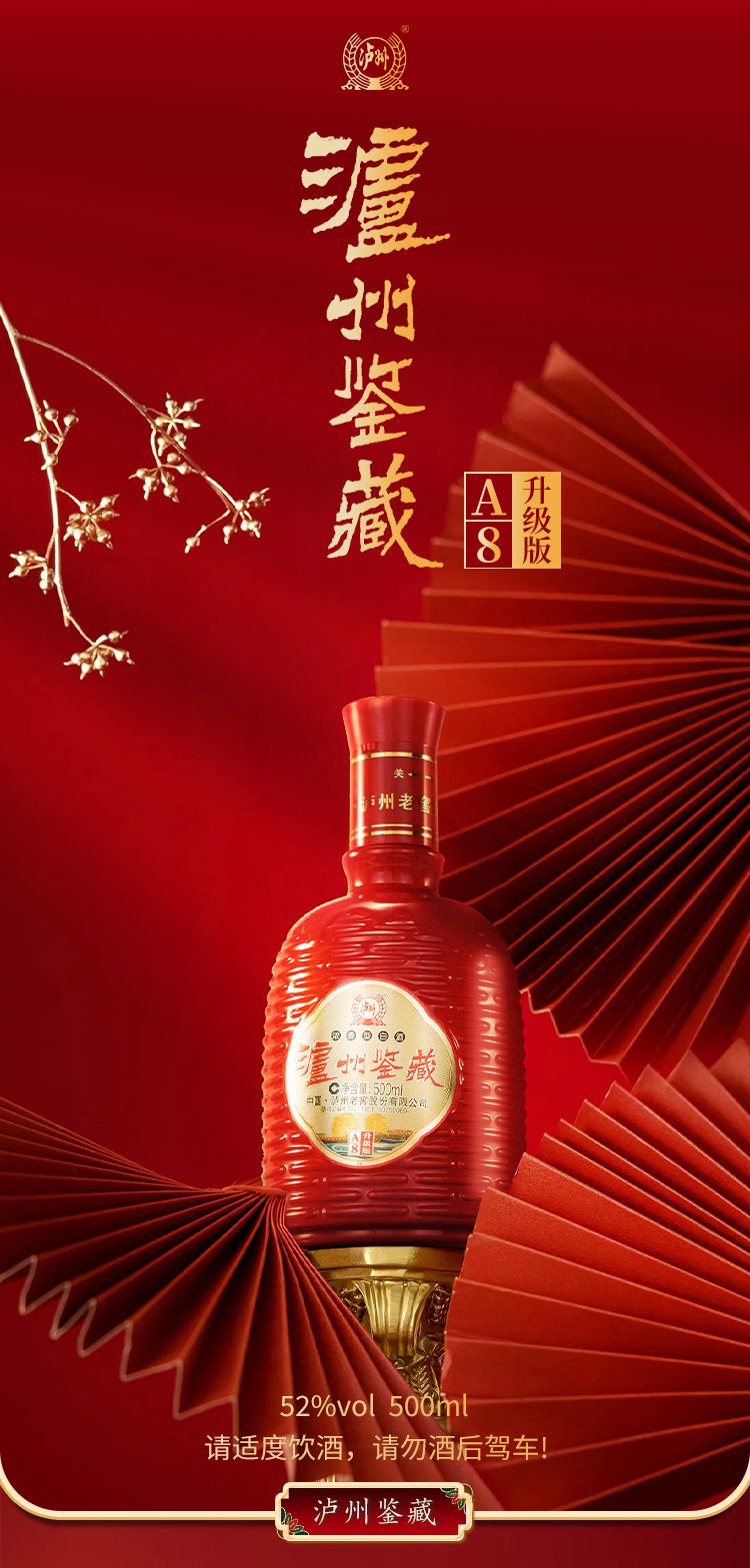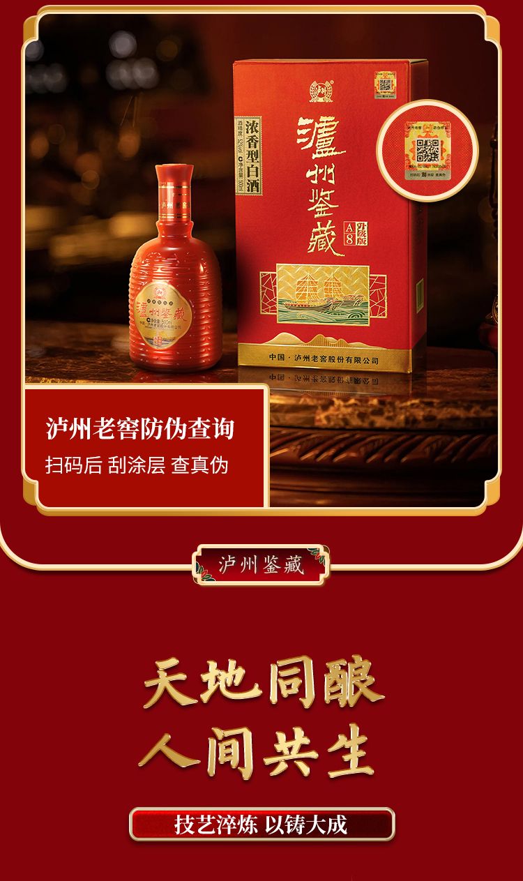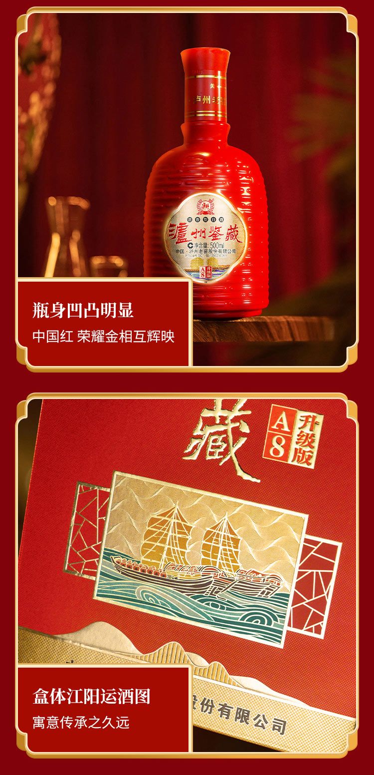 泸州老窖 泸州鉴藏A8升级版浓香型白酒500ml*6瓶礼盒装