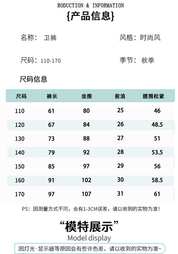 商品名称:男童百搭裤子2025春季新款潮流卫裤舒适保暖儿童中大童运动裤 340639