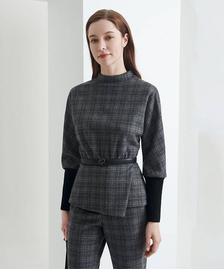 宝姿女装针精品舒适梭织结合设计款长袖上衣 125770