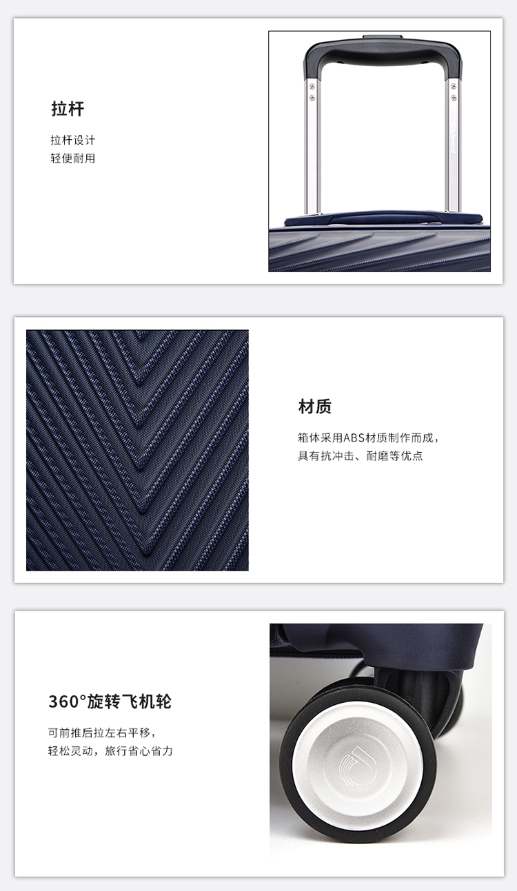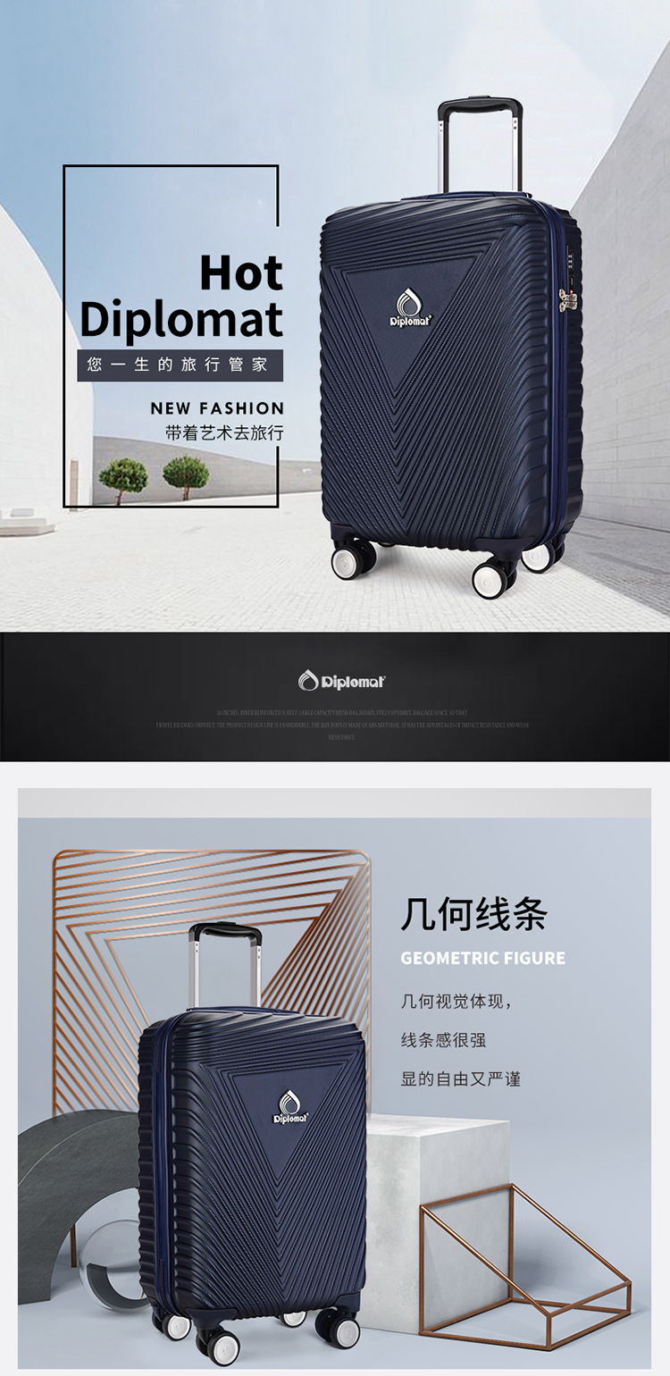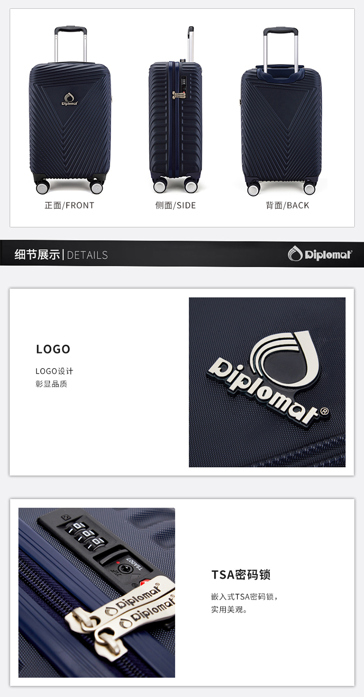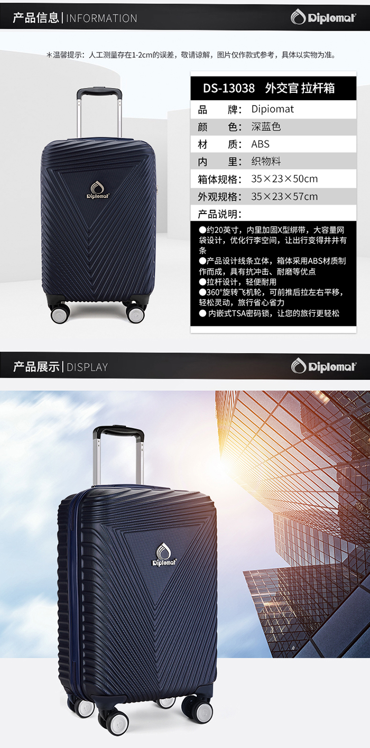 商品名称:Diplomat 外交官休闲时尚简约耐磨拉杆箱DS-13038 深蓝色 20英寸