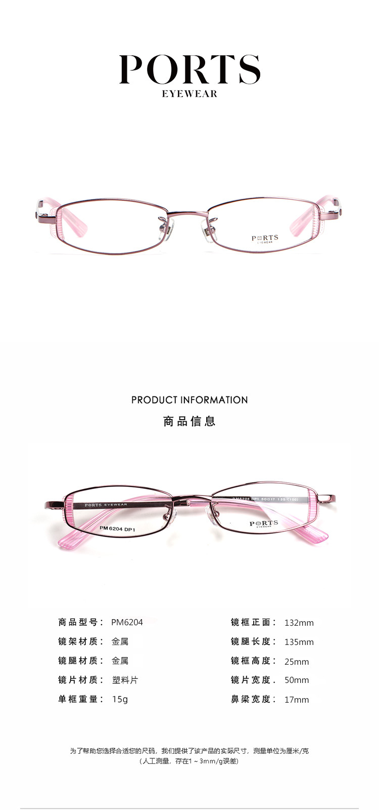 商品名称:Ports经典优雅小框金属眼镜架PM6204 013002