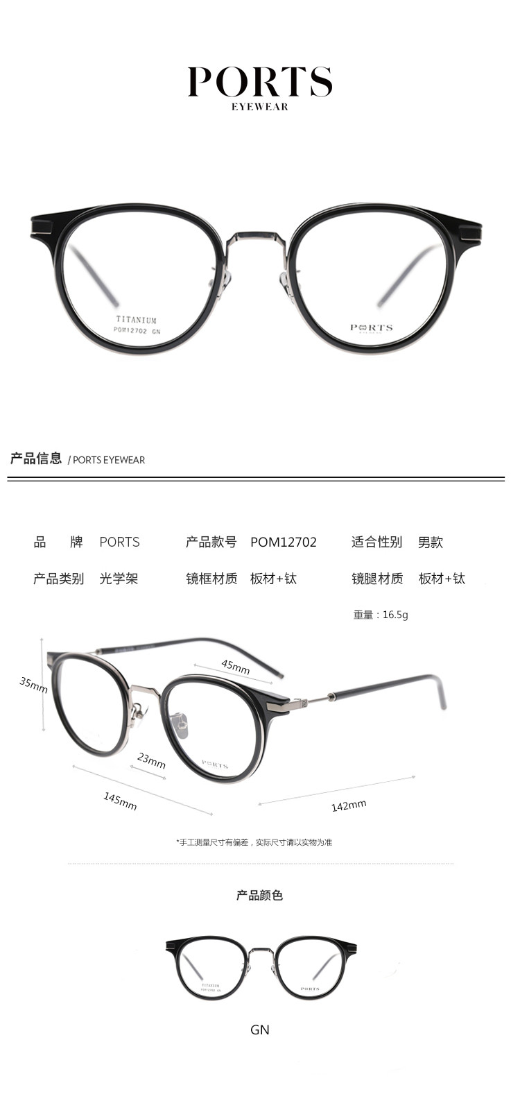 PORTS日常百搭知性简约合金眼镜架POF21003 675786