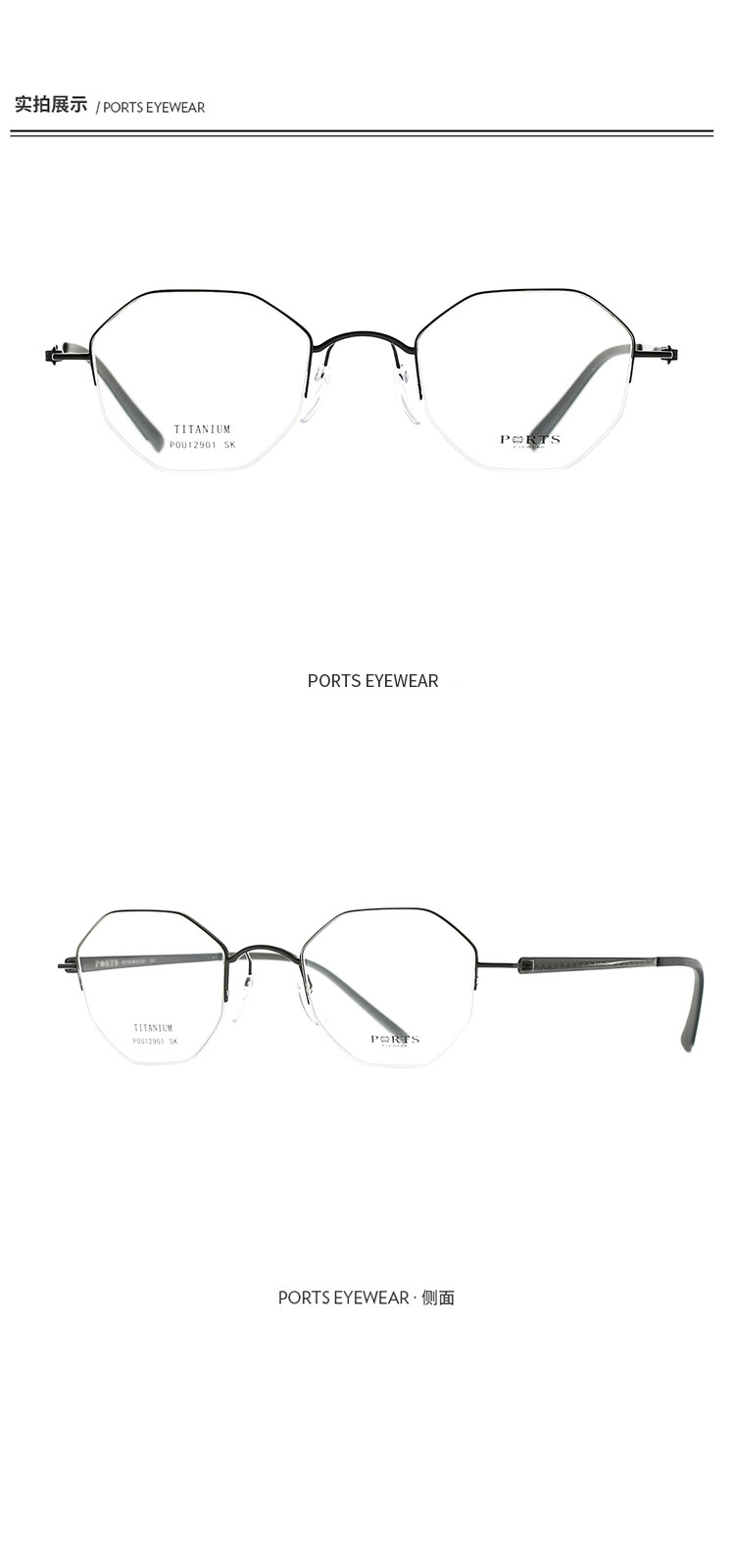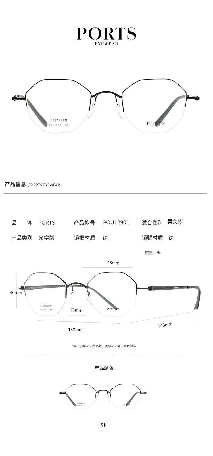商品名称:PORTS眼镜中性款光学架简约时尚圆形钛眼镜架POU12901 981834