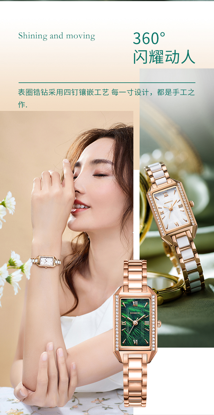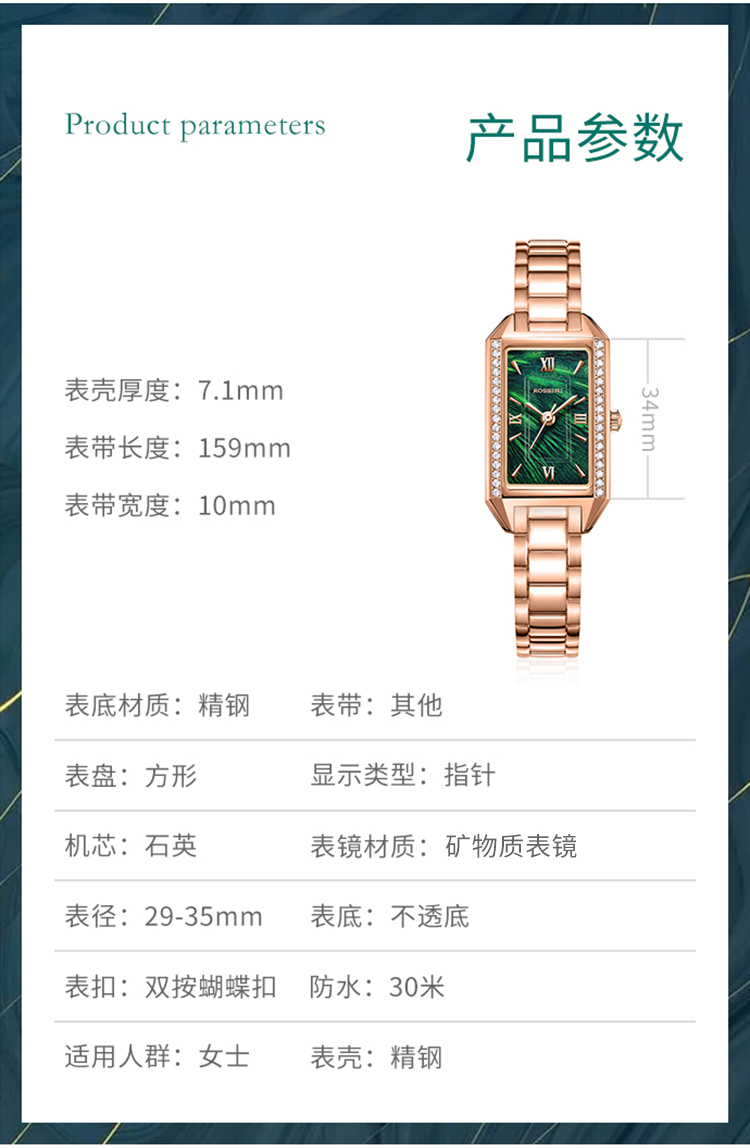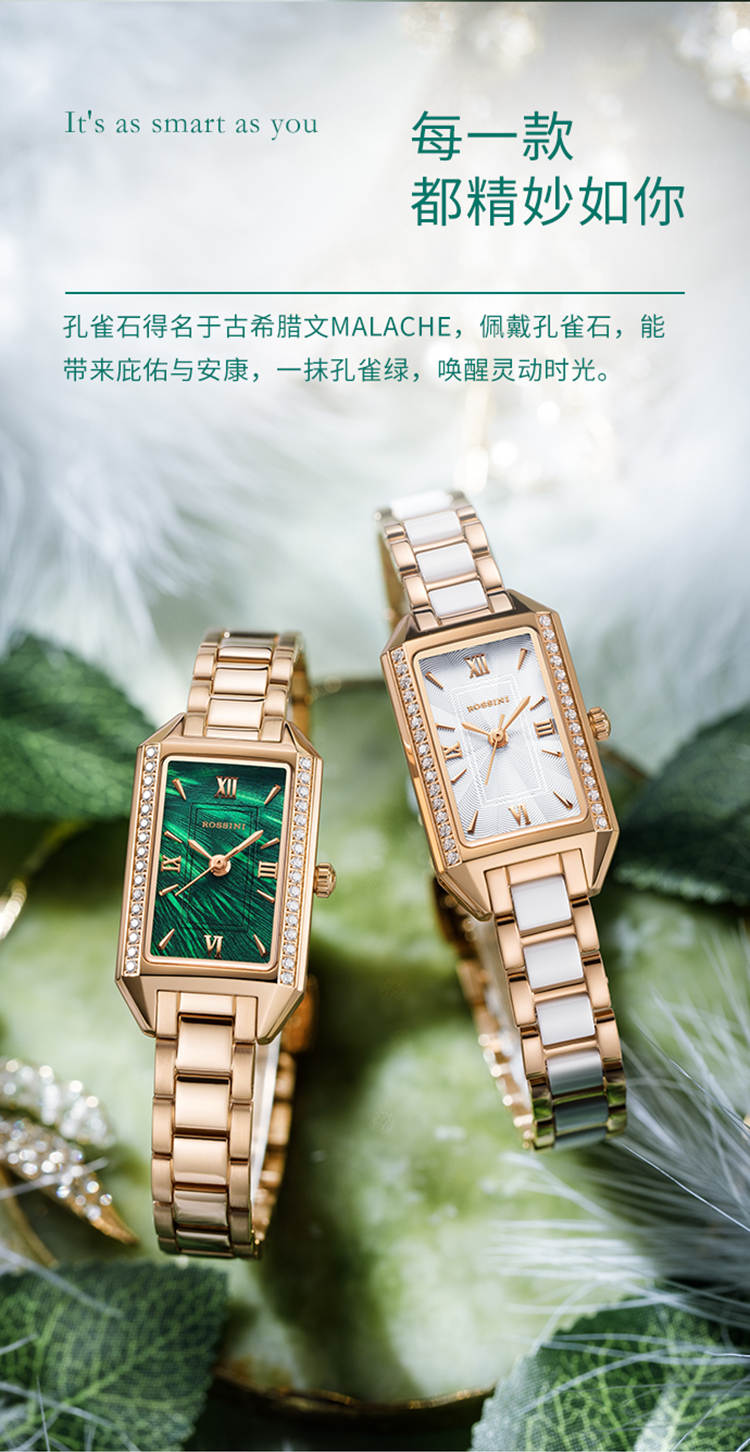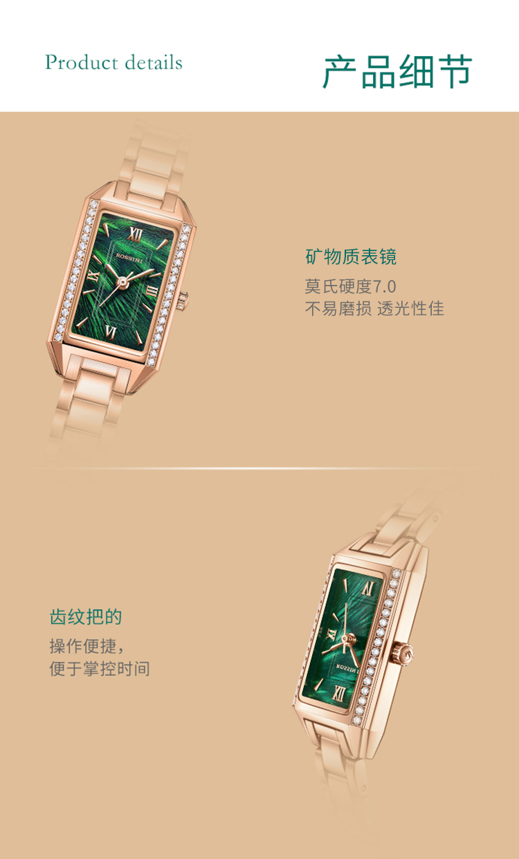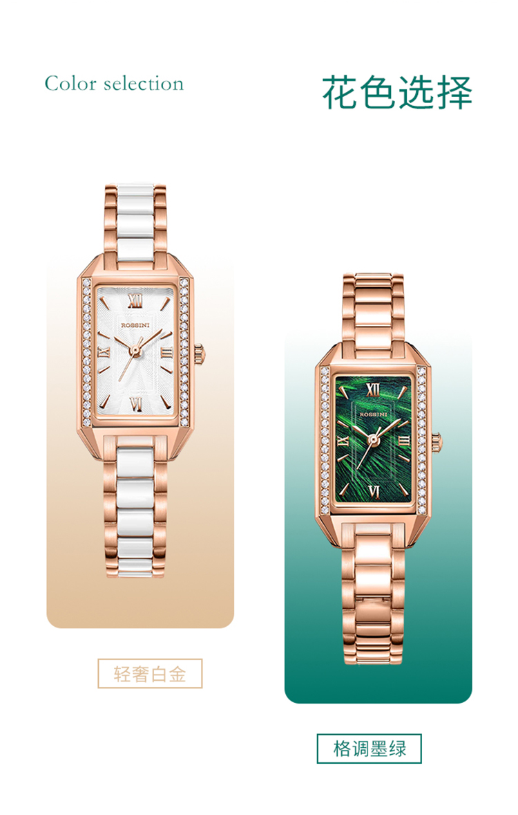 商品名称:Rossini罗西尼 典美系列 【专柜同款】石英手表时尚百搭绿盘钢带女表1446G08B