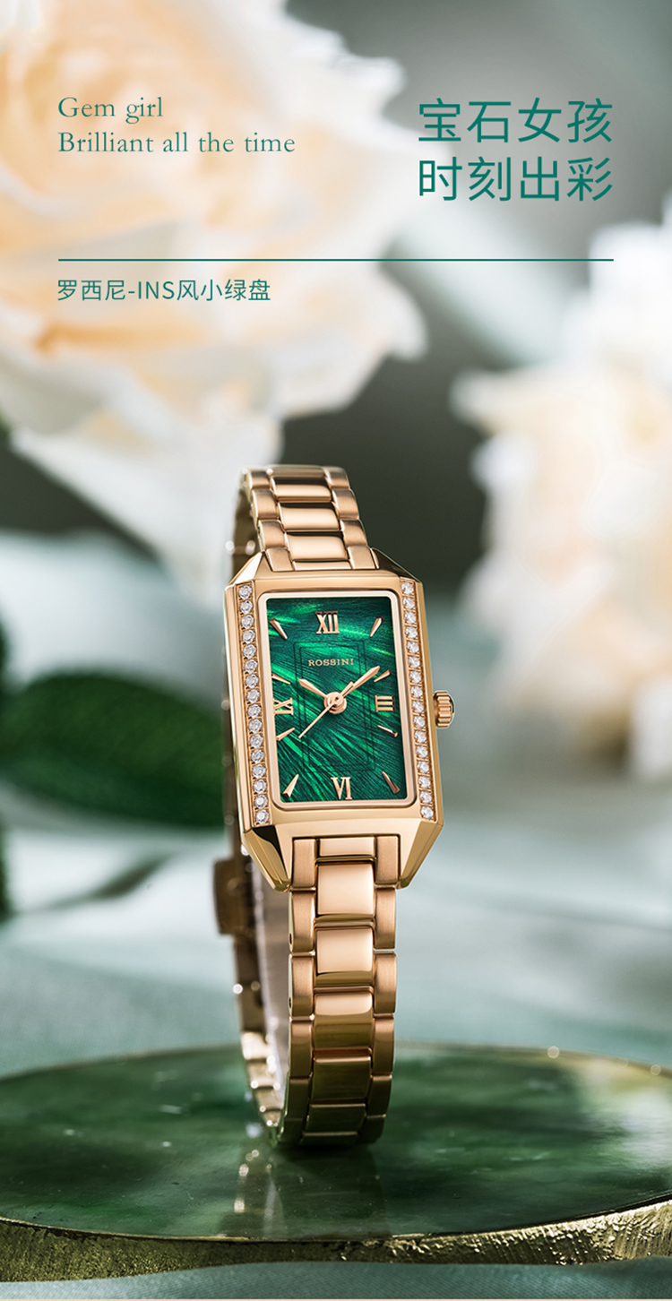 Rossini罗西尼 典美系列 【专柜同款】石英手表时尚百搭绿盘钢带女表1446G08B
