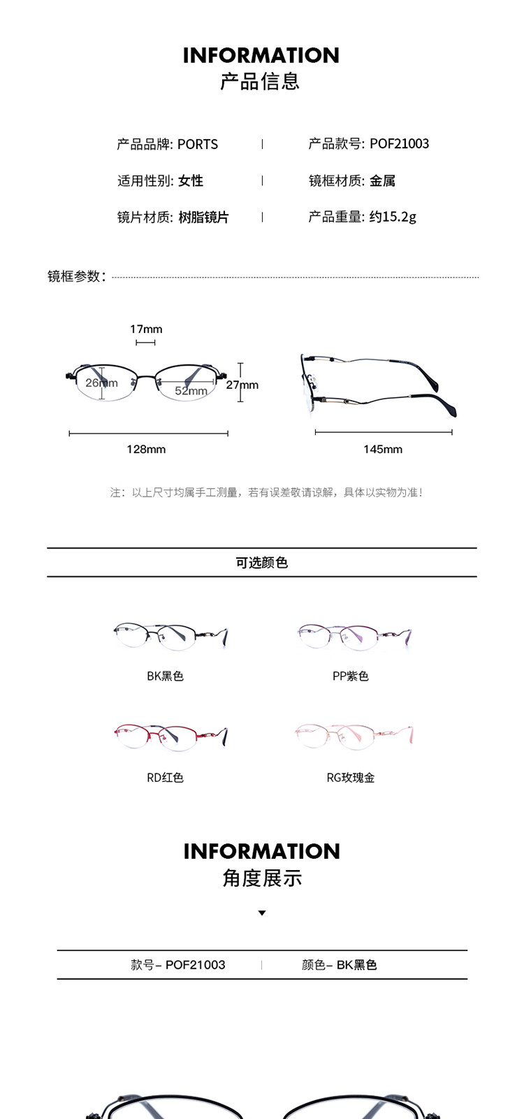 商品名称:PORTS日常百搭知性简约合金眼镜架POF21003 675786